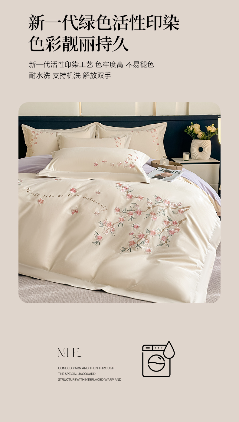 (总)桃园 新款纯棉全棉长绒棉刺绣绣花高端礼盒四件套-卡尔系列,卡尔 香芋紫,卡尔 飘蓝,卡尔 香槟,卡尔 轻奢粉