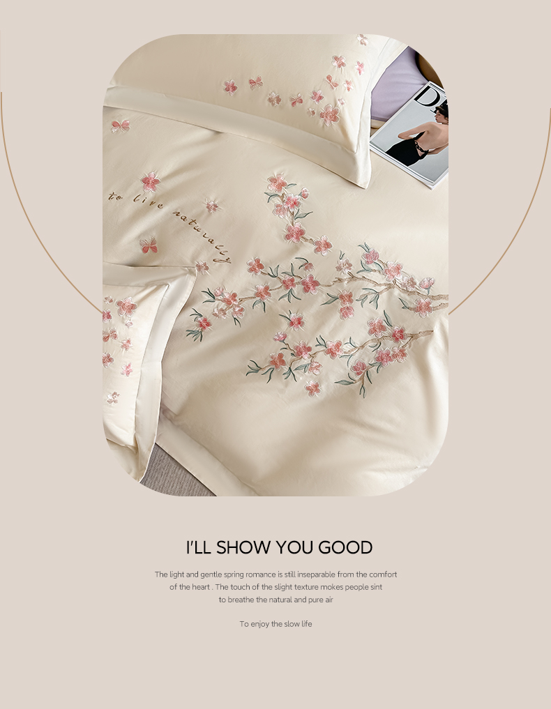 (总)桃园 2025新款纯棉全棉长绒棉刺绣绣花四件套(高端礼盒)-叶语,叶语-飘蓝,叶语-轻奢粉,叶语-绅士灰,叶语-香槟金