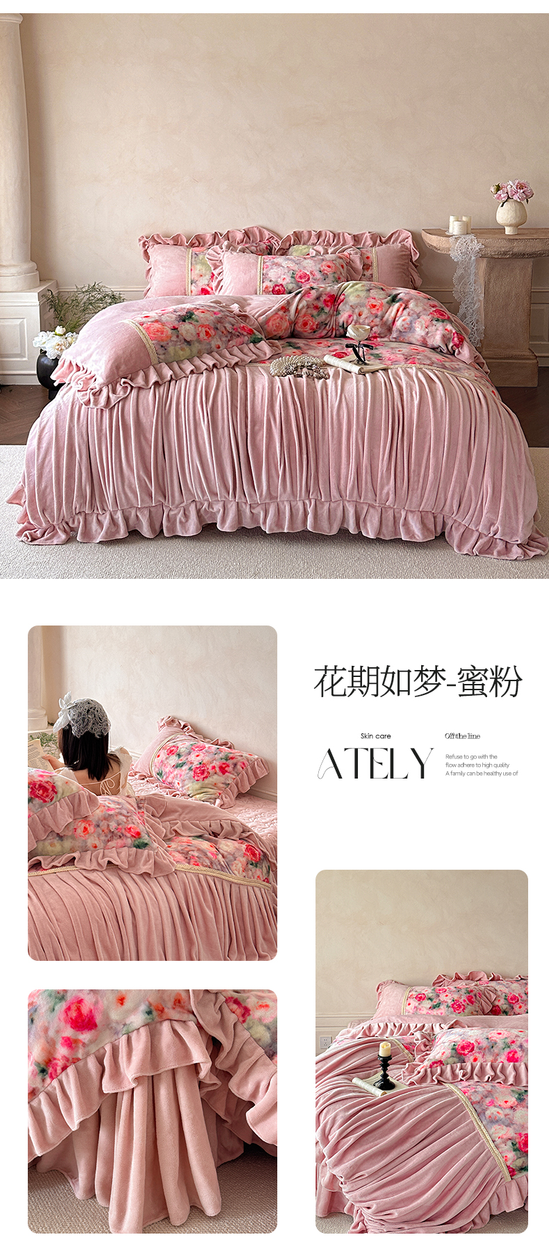 (总)瑞宝 2025新款雕花牛奶绒夹棉床裙四件套-花有约,花有约-粉玉,花有约-卡其,花有约-蔚蓝,花有约-青柠绿,花有约-梦幻紫,花有约-奶油白