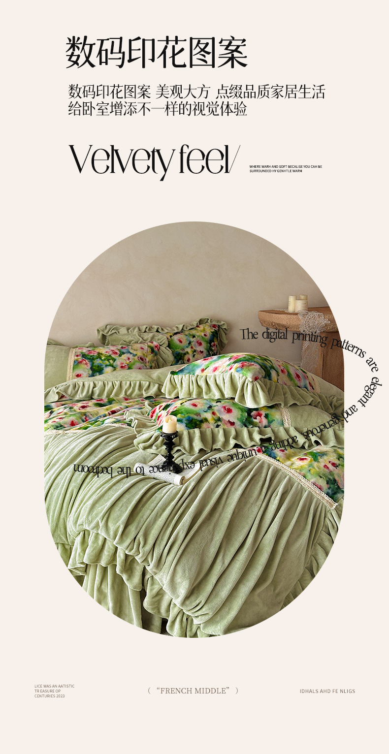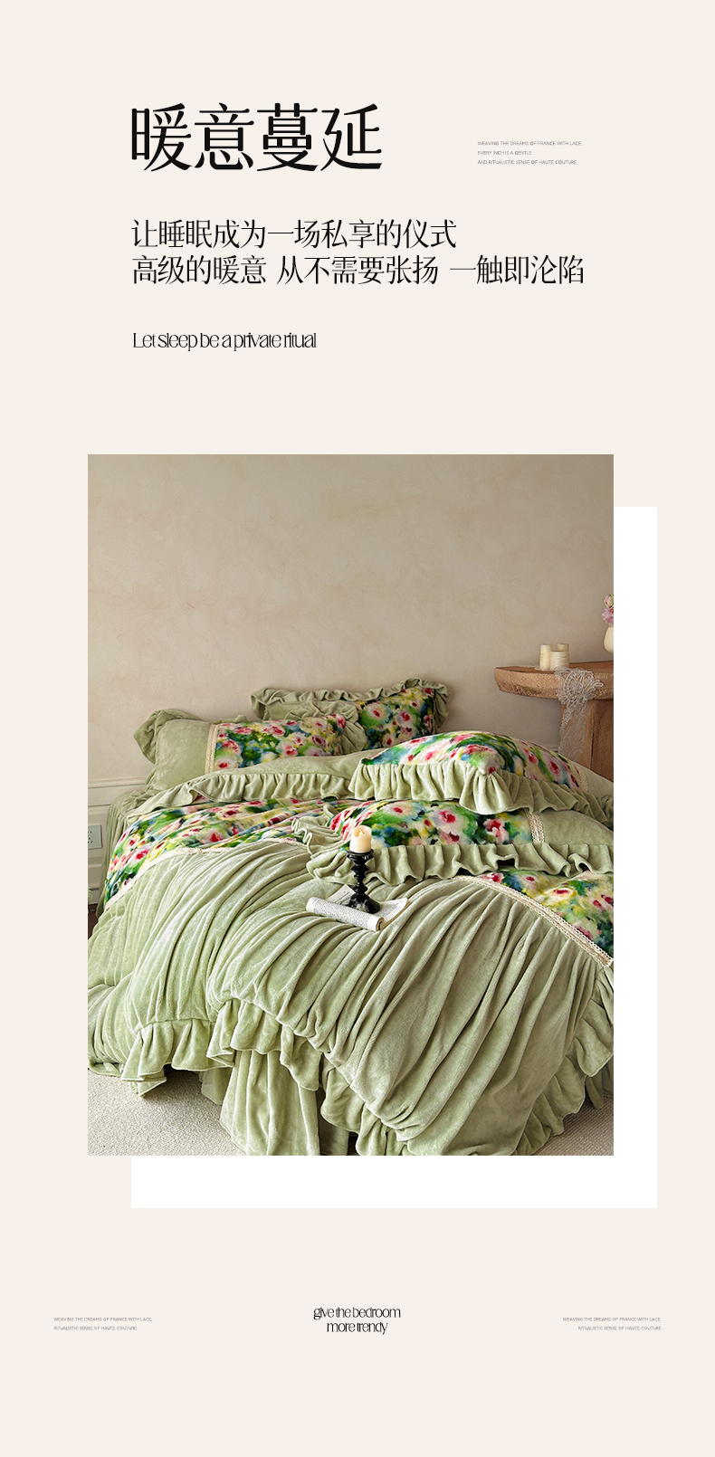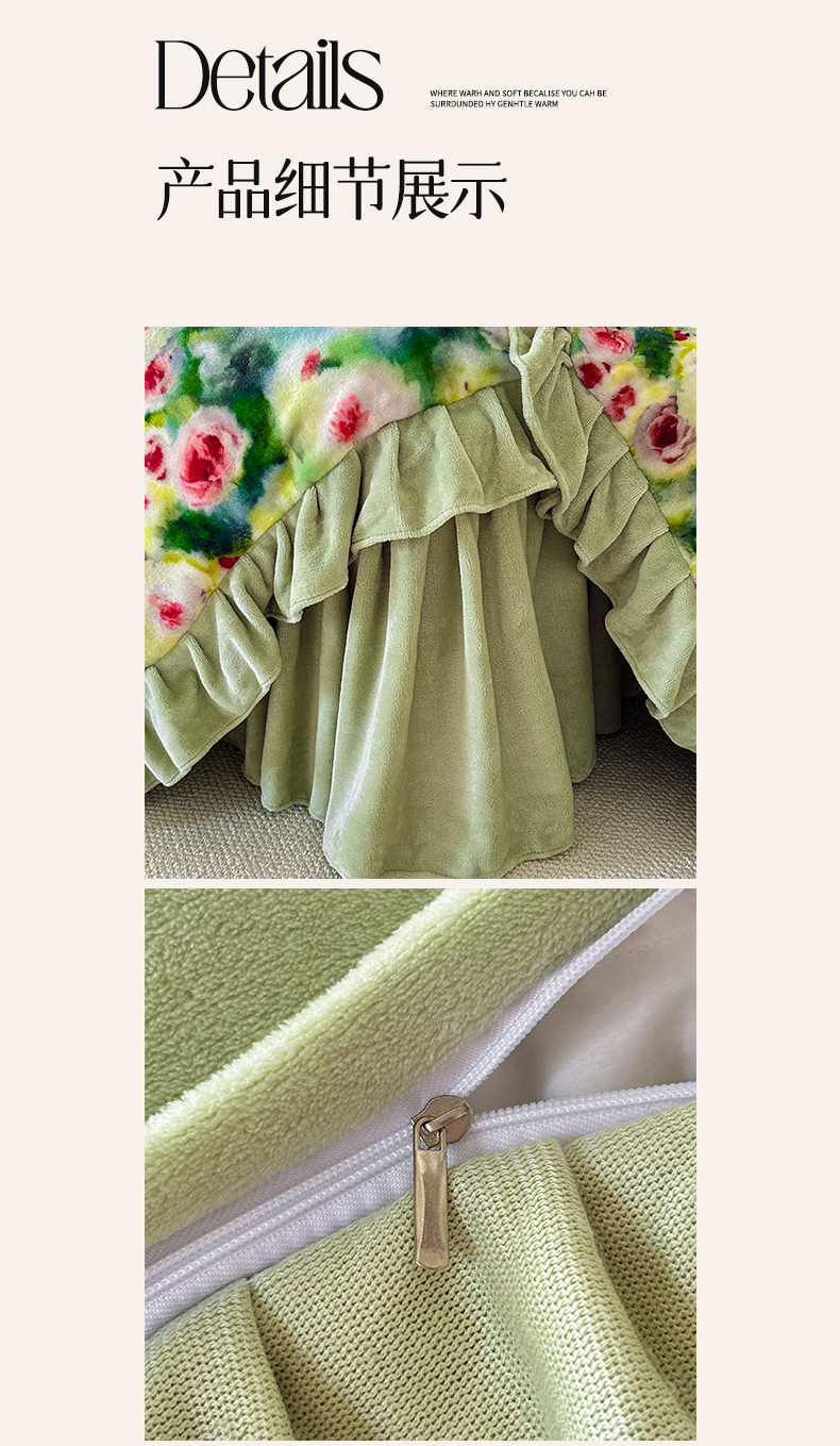 商品名称:瑞宝 2025新款全消光牛奶绒床裙四件套-花期如梦 花期如梦-青柠绿