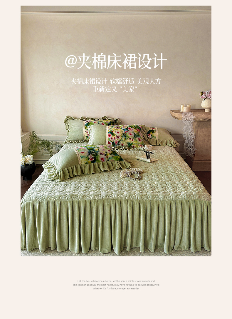 (总)瑞宝 2025新款雕花牛奶绒夹棉床裙三件套-花有约,花有约-粉玉,花有约-青柠绿,花有约-奶油白,花有约-蔚蓝,花有约-卡其,花有约-梦幻紫
