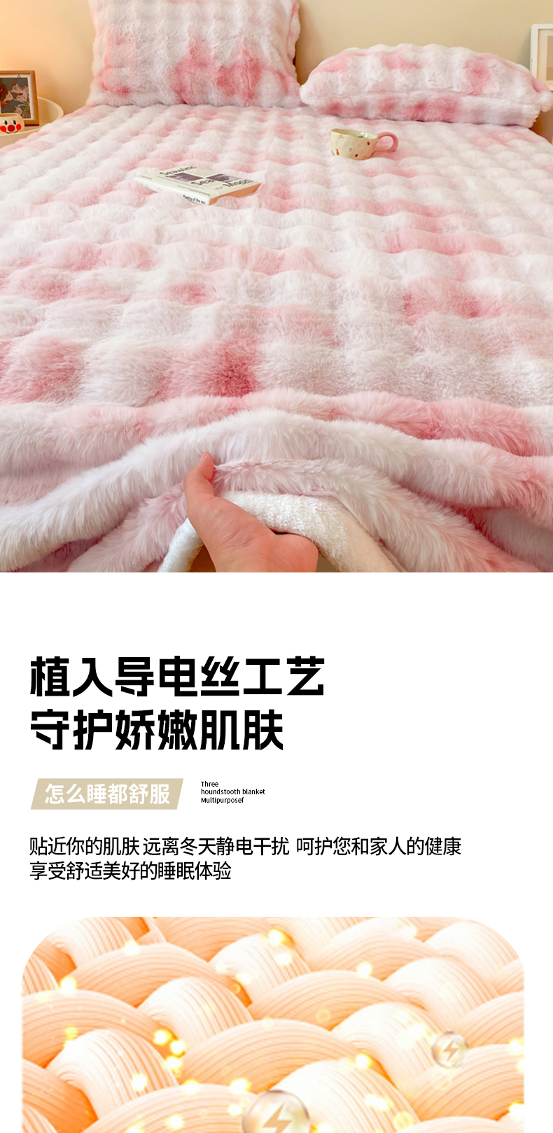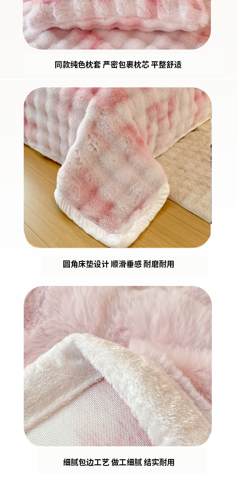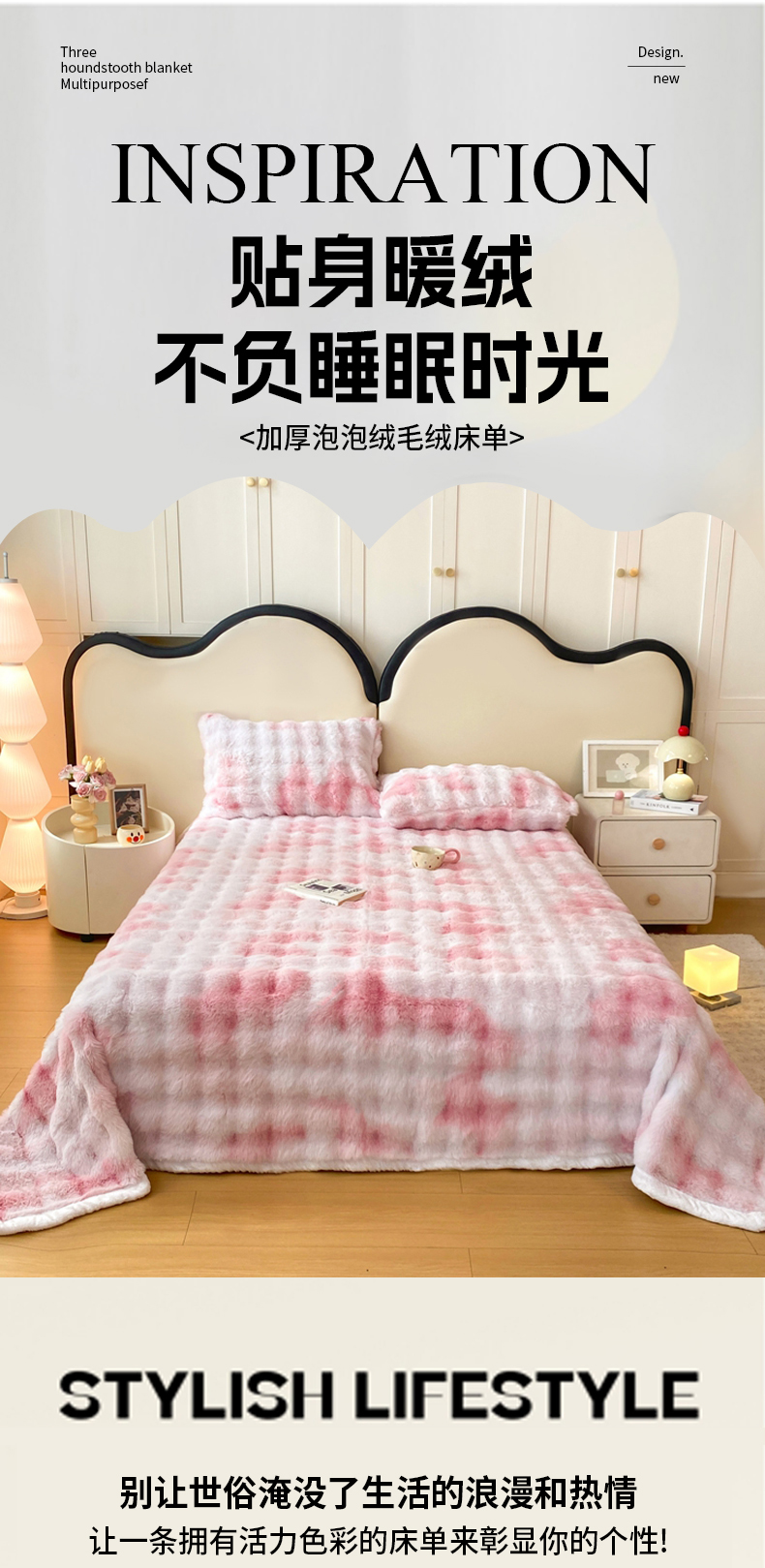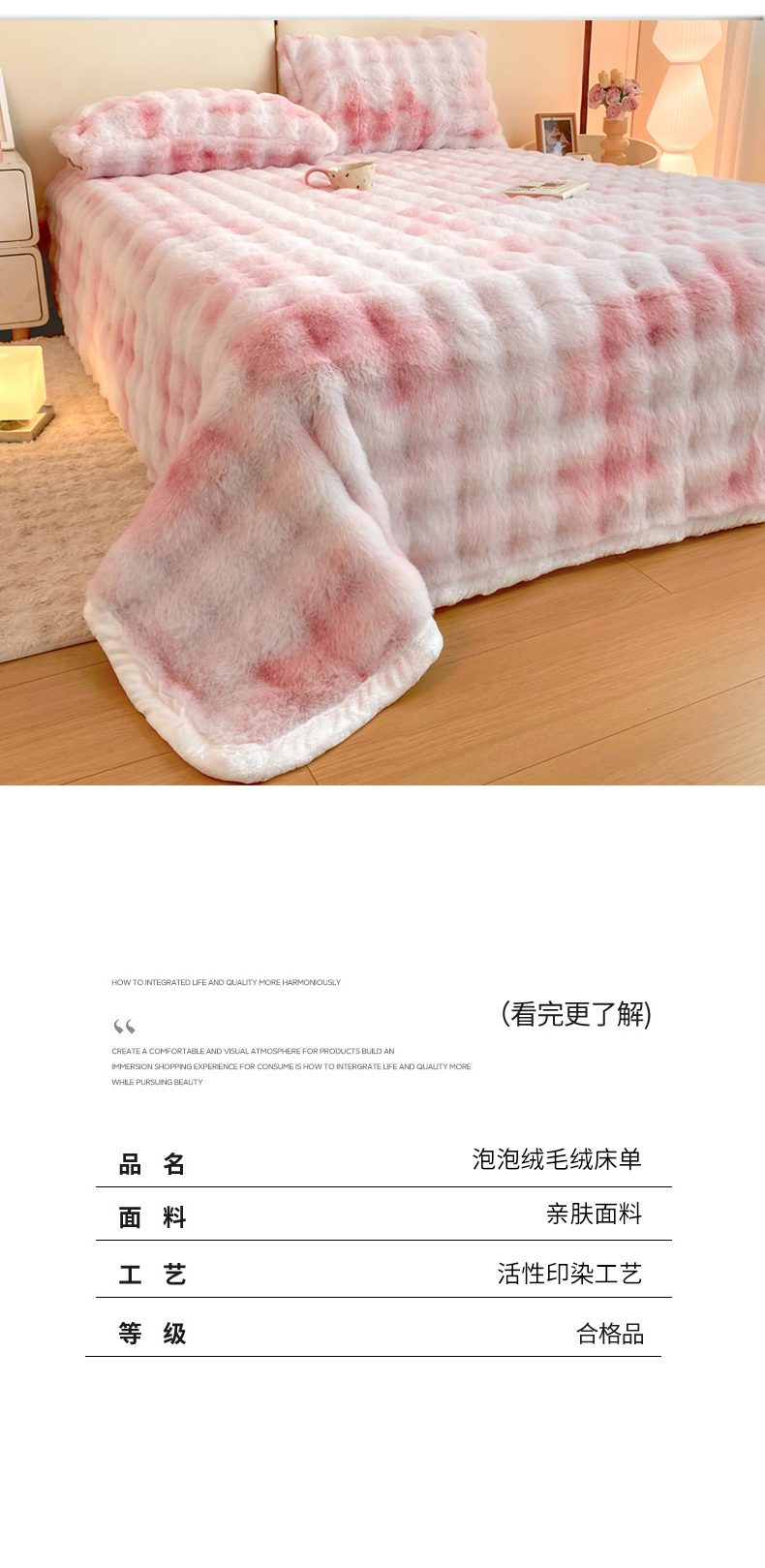 麒东家纺 2025新款泡泡绒兔毛绒床单 流彩粉