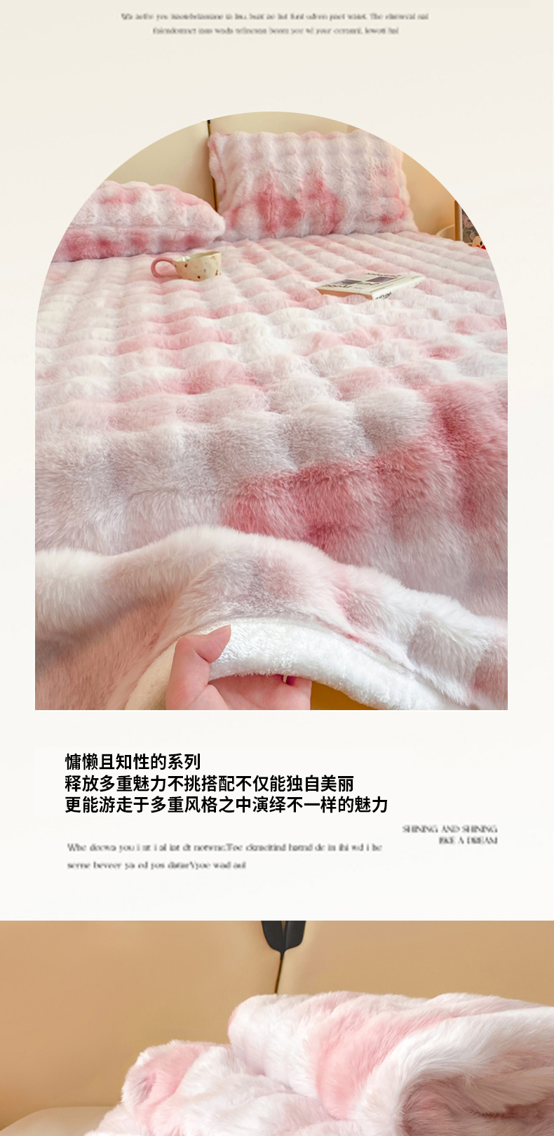 • 91家纺网 家纺一手货源 找家纺 麒东家纺 2025新款泡泡绒兔毛绒床单 流彩粉