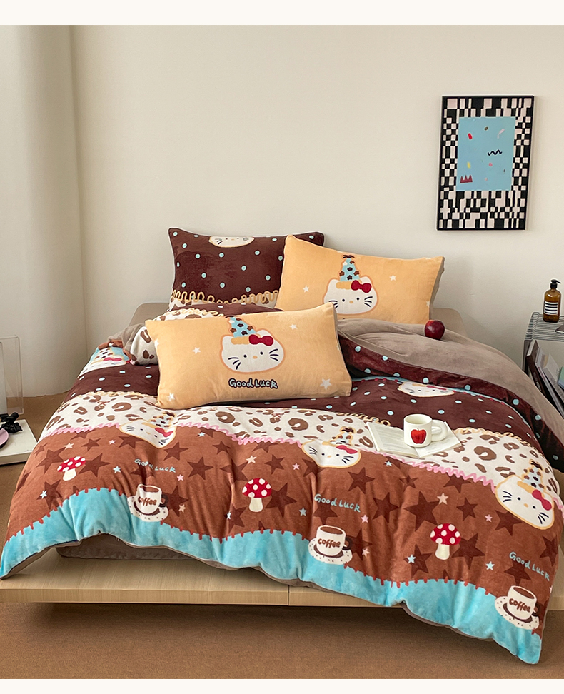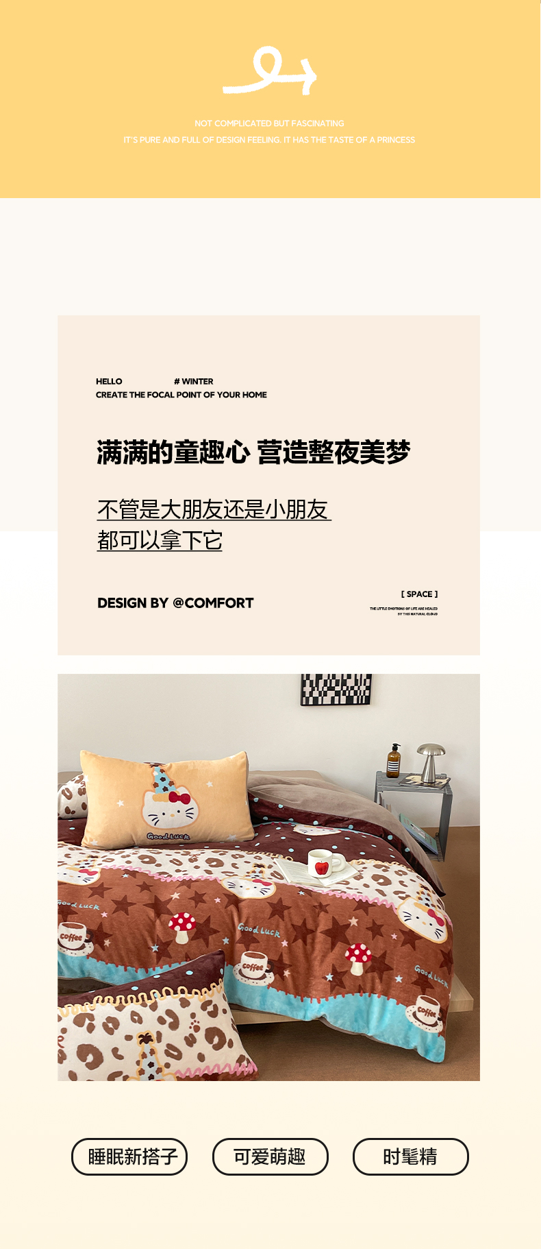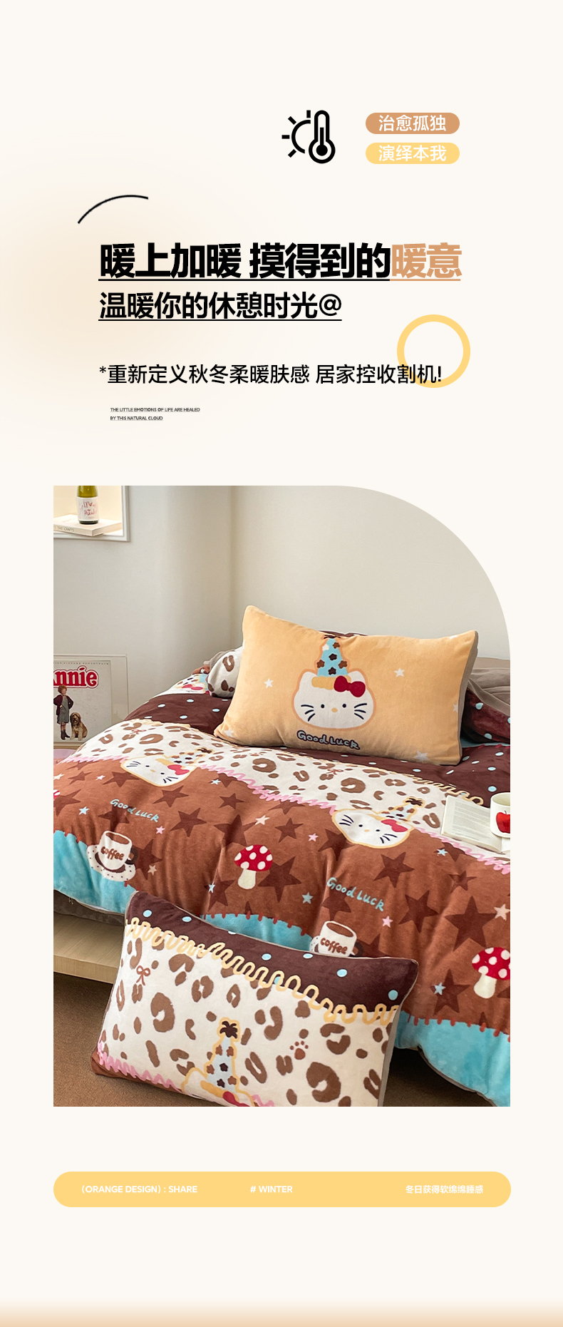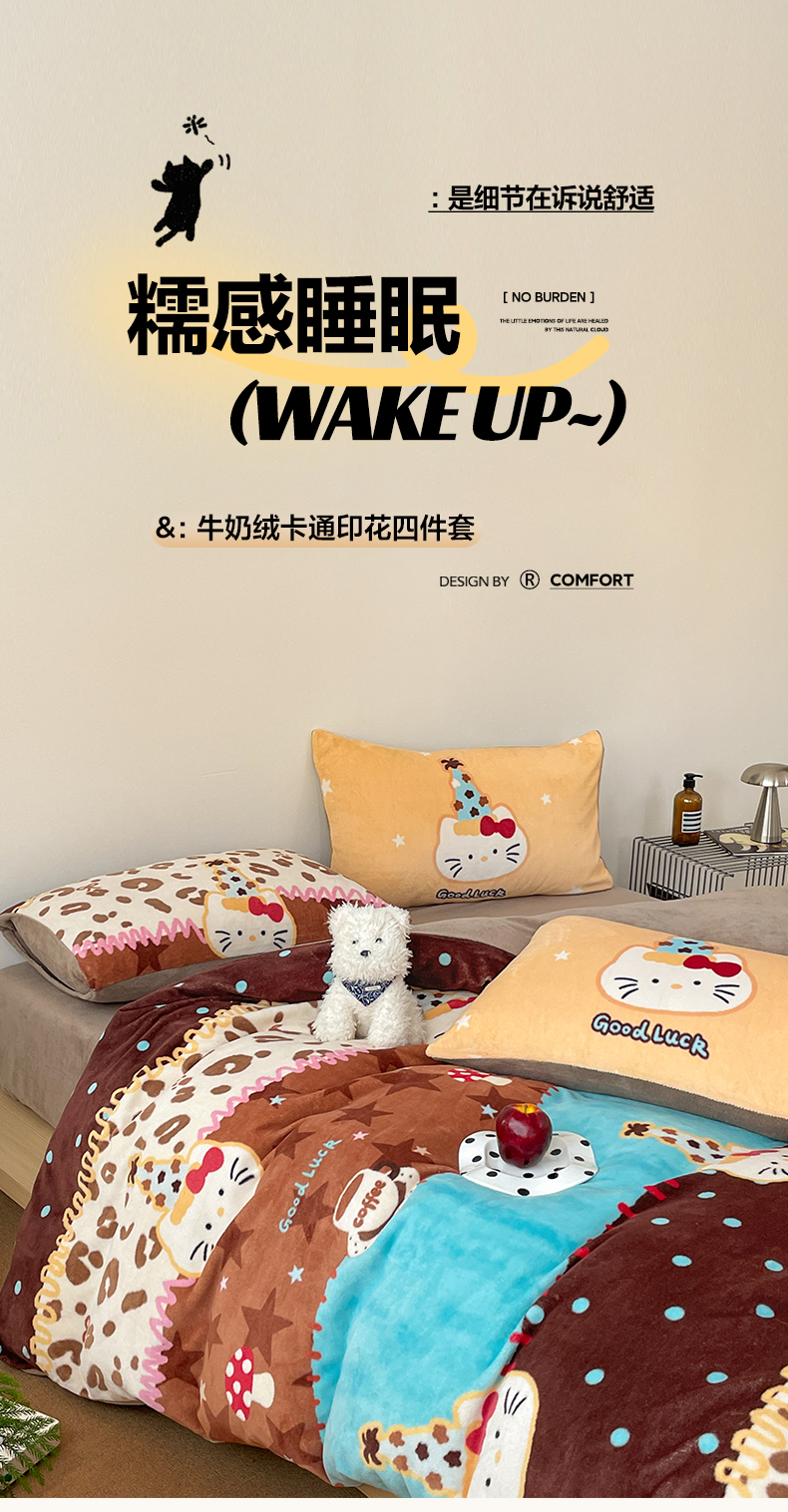 当前位置: 91家纺网 > 商品网购 > 床品套件 > 四件套 > 牛奶绒四件套 > 摩妮卡 2025新款牛奶绒枕套混搭卡通复古四件套 幸运小猫