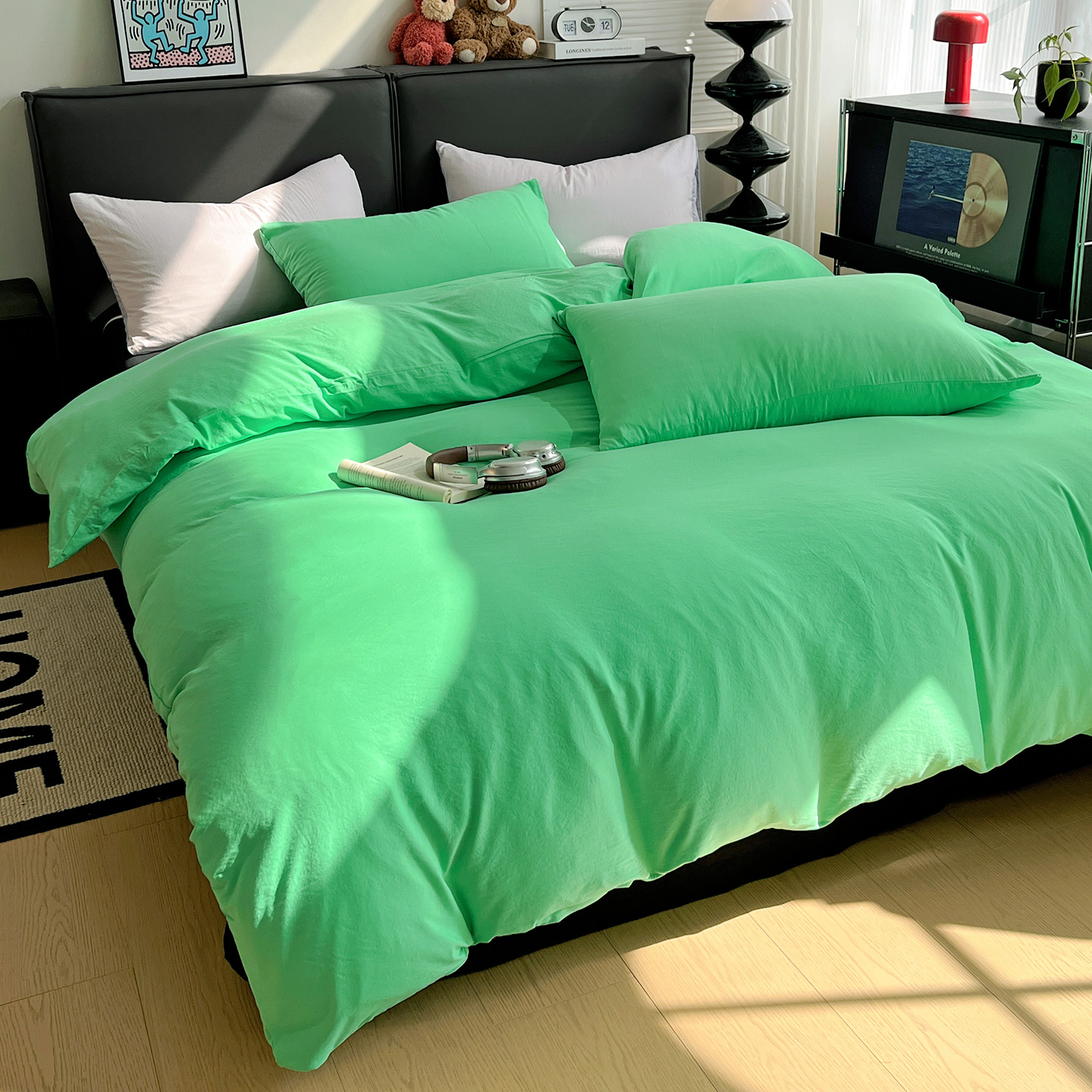 当前位置: 91家纺网 > 商品网购 > 床品套件 > 四件套 > 水洗棉四件套 > 凯洛奇 2025新款ins北欧风水洗棉柔软褶皱纯色被套四件套 拼色-白绿