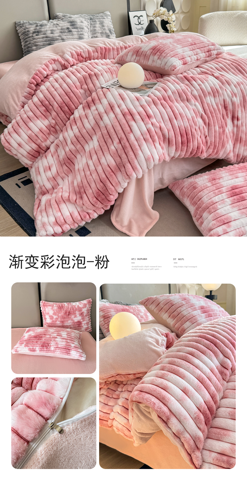 商品名称:蓝极人 2025新款A类抽条兔绒兔毛绒兔兔绒四件套 渐变彩泡泡-粉