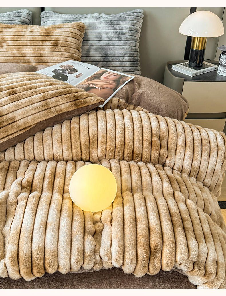 (总)蓝极人 2025新款A类抽条兔绒兔毛绒兔兔绒四件套,渐变彩泡泡-粉,渐变彩泡泡-灰,渐变彩泡泡-咖