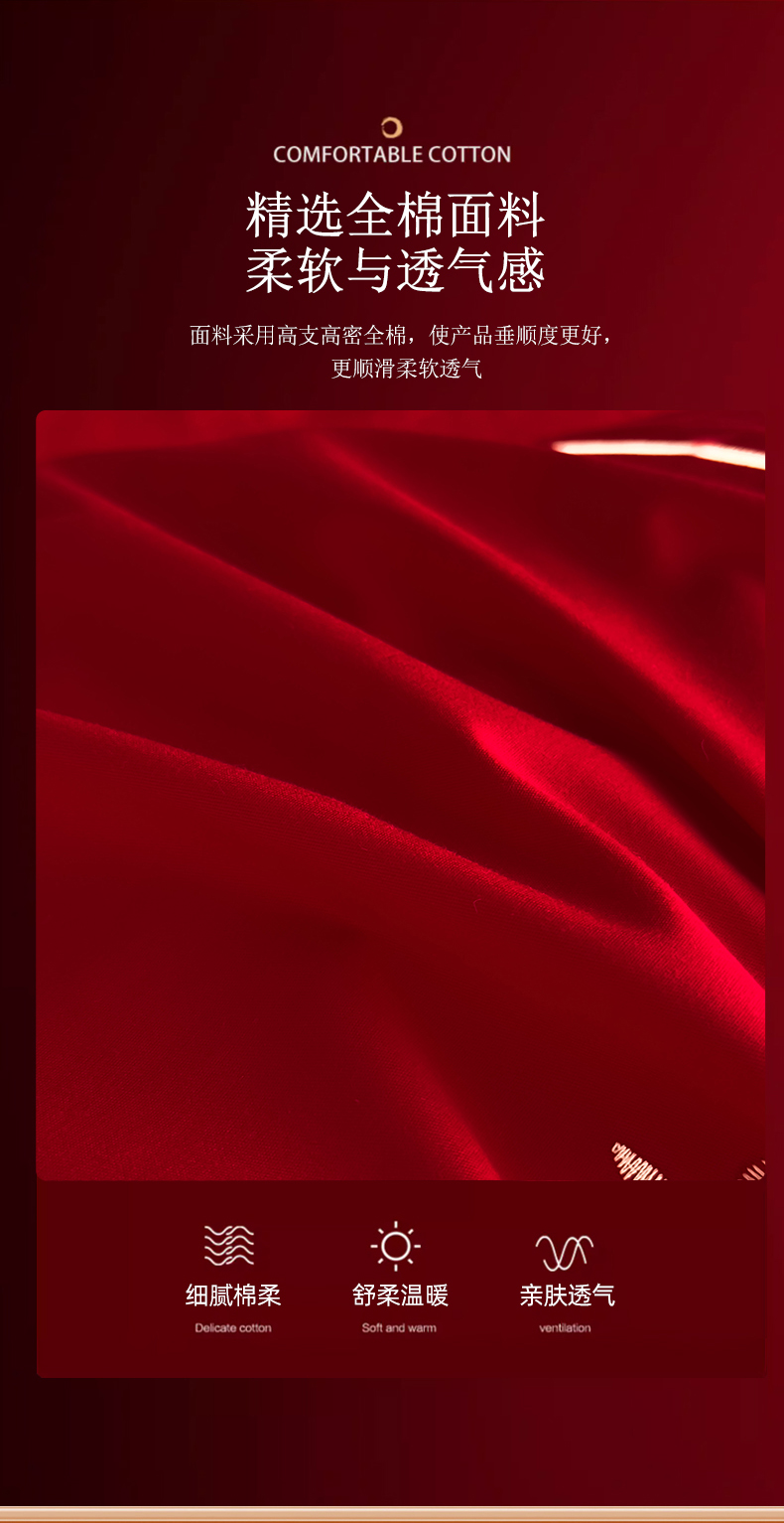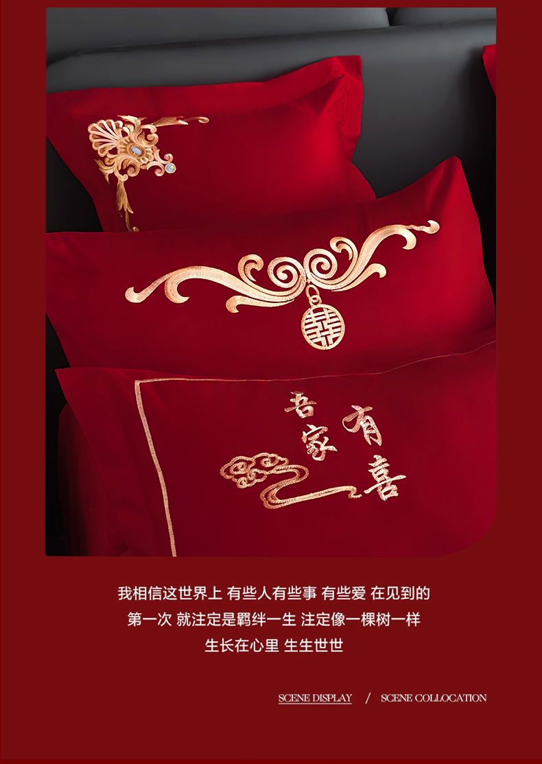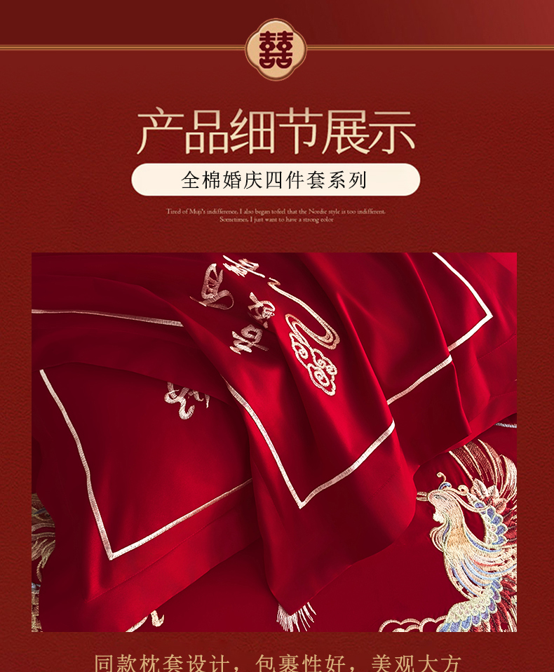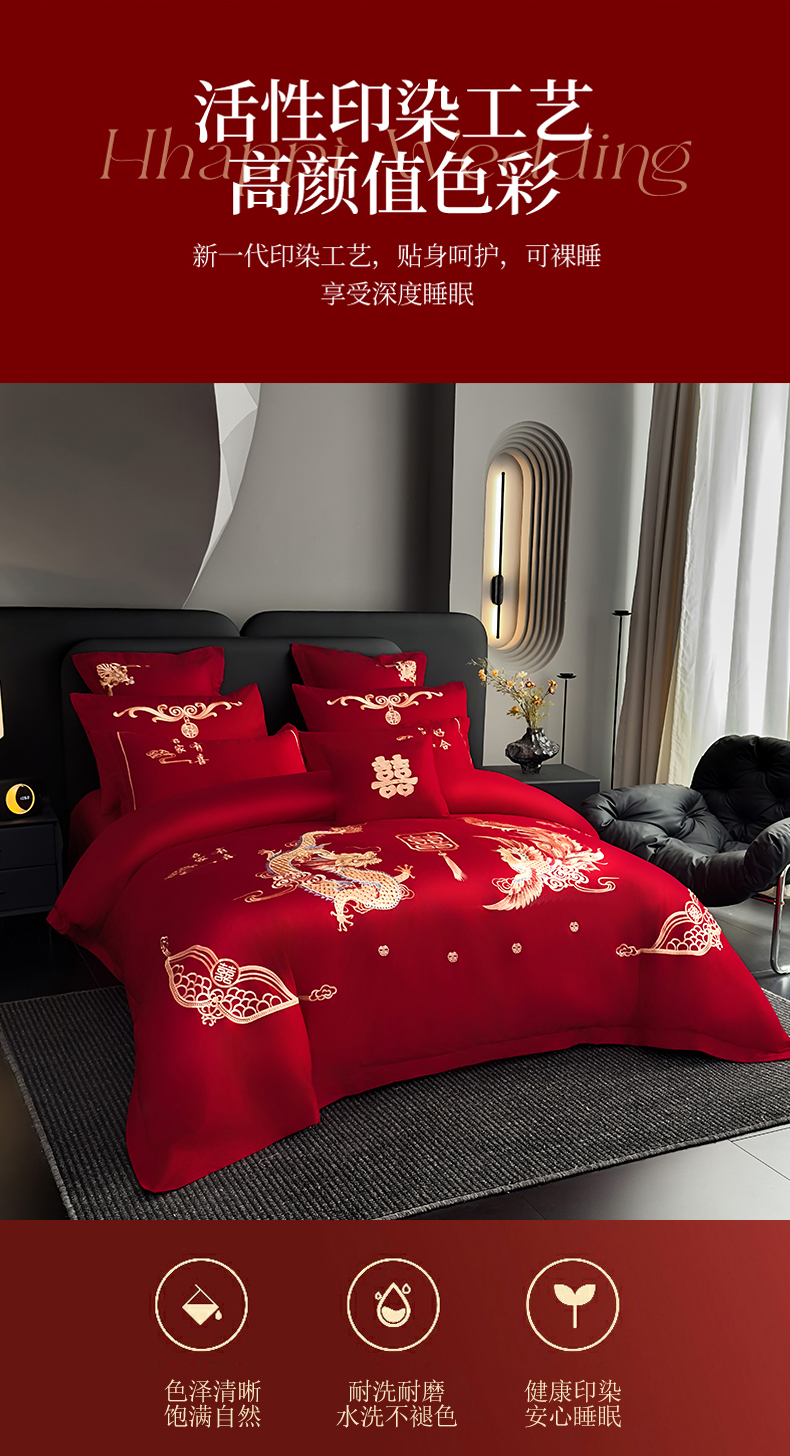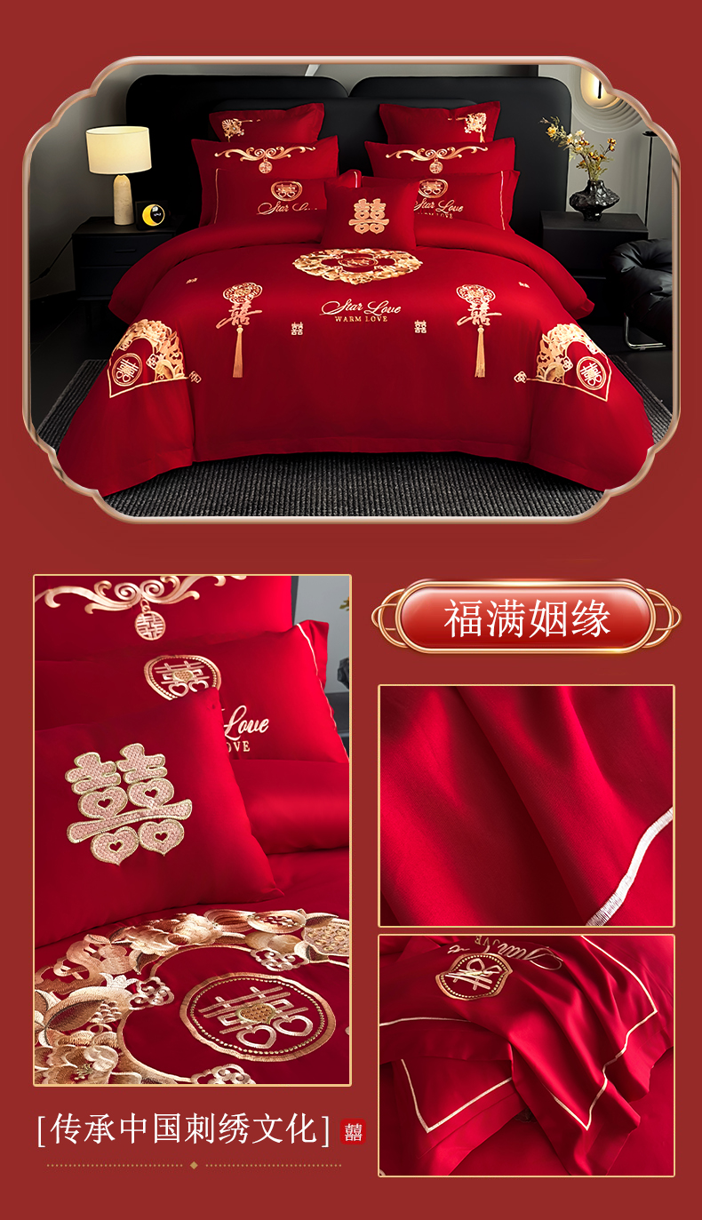娇伊诗婚庆 2025新款刺绣工艺全棉婚庆四件套系列 幸福美满红,幸福美满红