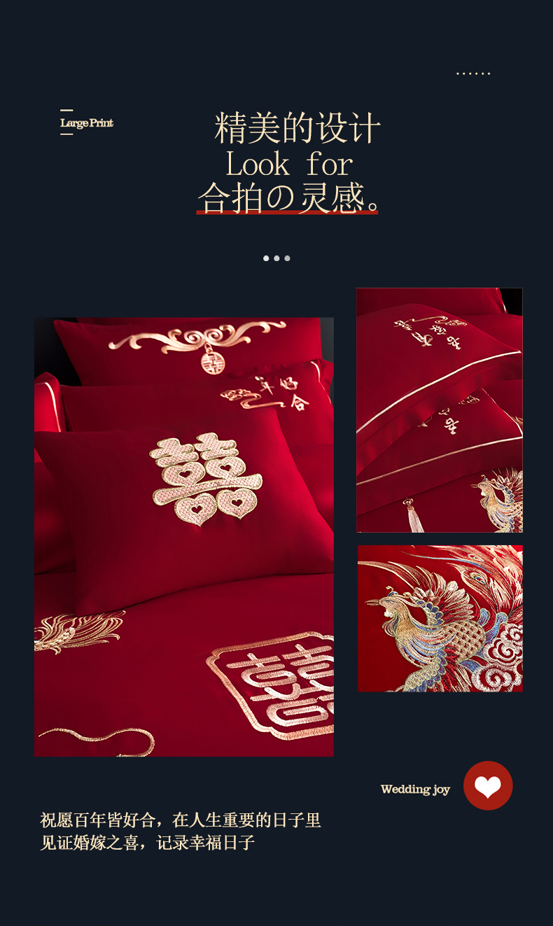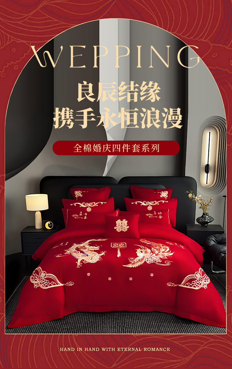 (总)娇伊诗婚庆 2025新款刺绣工艺全棉婚庆四件套系列,爱情故事,喜结良缘,福满姻缘,幸福美满金,龙凤贺喜,幸福美满红,龙章凤姿