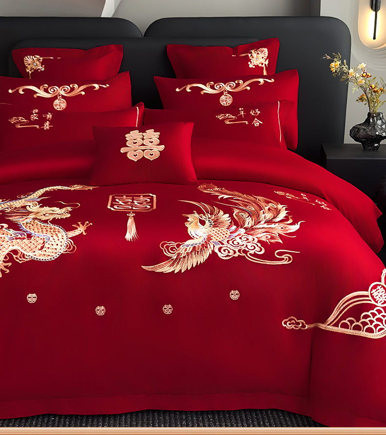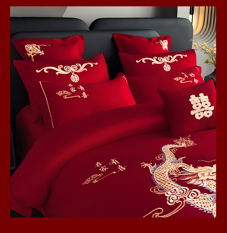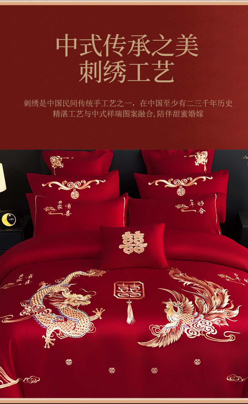 娇伊诗婚庆 2025新款刺绣工艺全棉婚庆四件套系列 龙凤贺喜,龙凤贺喜