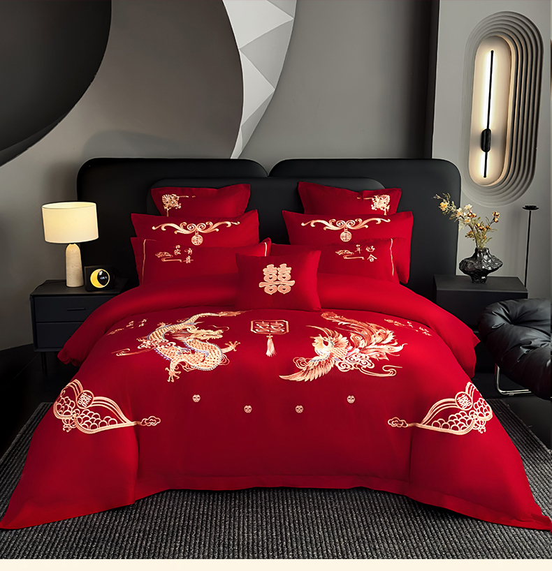 娇伊诗婚庆 2025新款刺绣工艺全棉婚庆四件套系列 龙凤贺喜