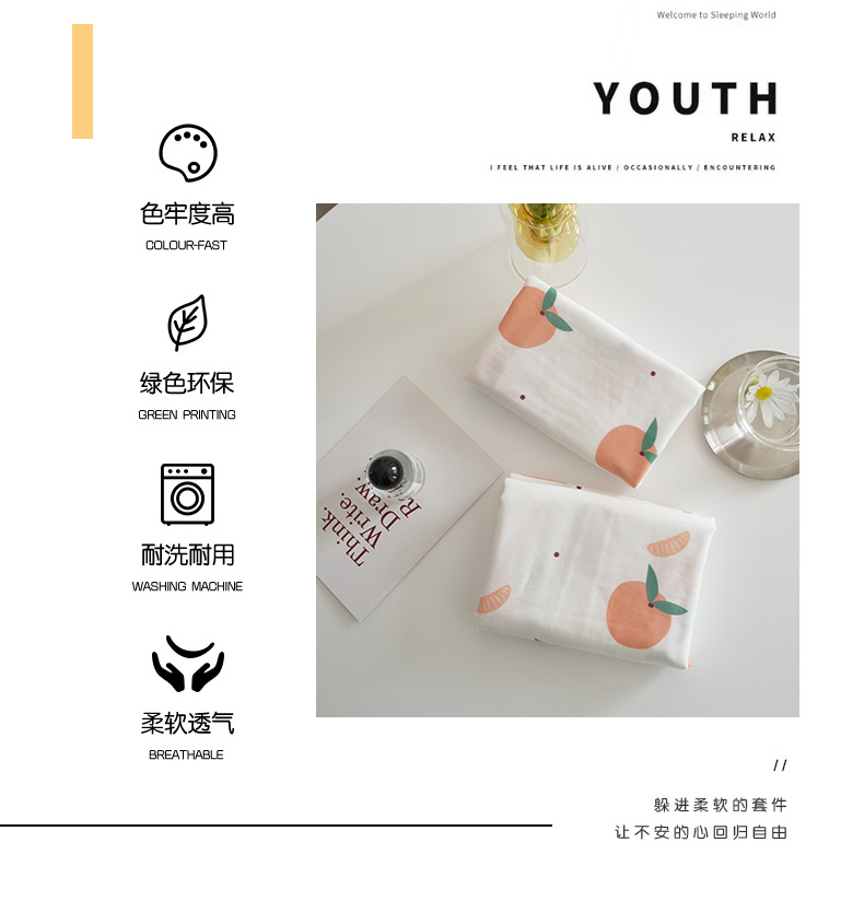 (总)源启生活 2022镂空花边款双层纱全棉夏凉被纯棉空调被,初夏橙,初夏粉,初夏蓝,初夏绿