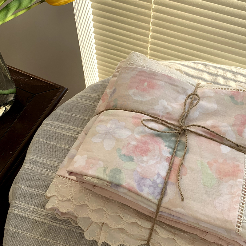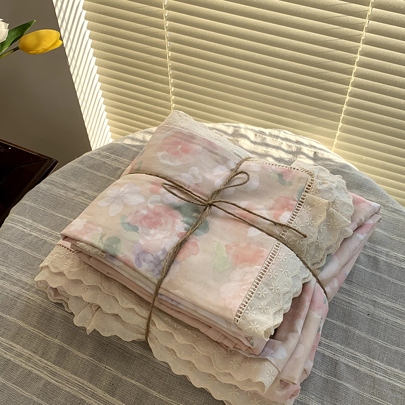(总)源启 2022新款韩系小清新花边款双层纱四件套,花开,流年,日和,若雨,闲云