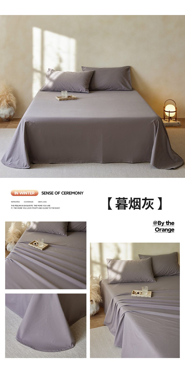 (总)轩和家居 2025新款全棉高支旧感砂洗长绒棉单床单,组合,霁兰色,暮烟灰,墨染灰,落栗棕,薄樱粉,豆沙色,淡黄色,浅云白,青绿色,秋麦色,松石绿,天空蓝,雾海蓝,细雨灰