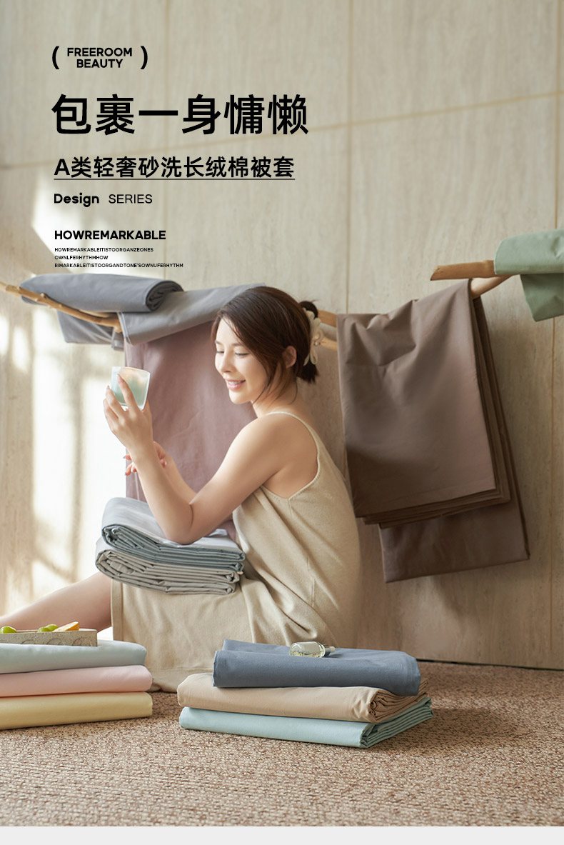 (总)轩和家居 2025新款全棉高支旧感砂洗长绒棉单被套,组合,薄樱粉,淡黄色,豆沙色,霁兰色,落栗棕,墨染灰,暮烟灰,浅云白,青绿色,秋麦色,松石绿,天空蓝,雾海蓝,细雨灰