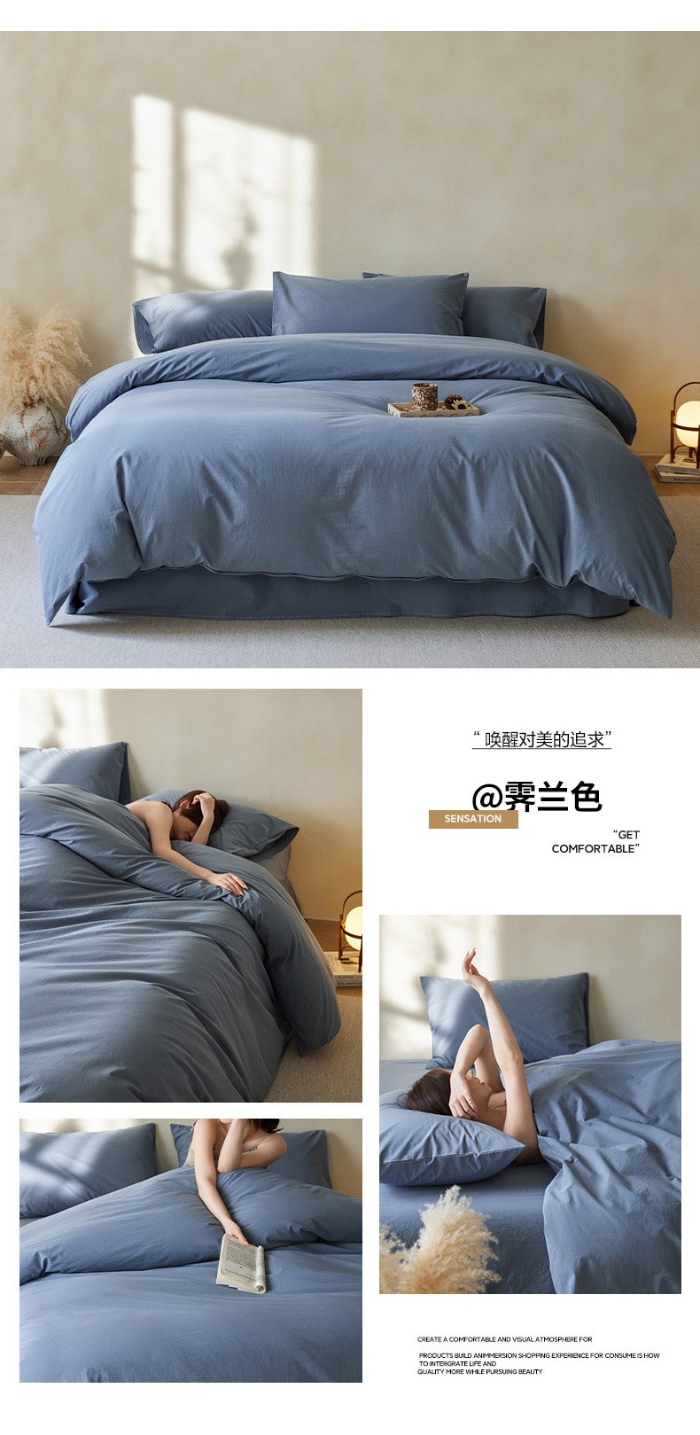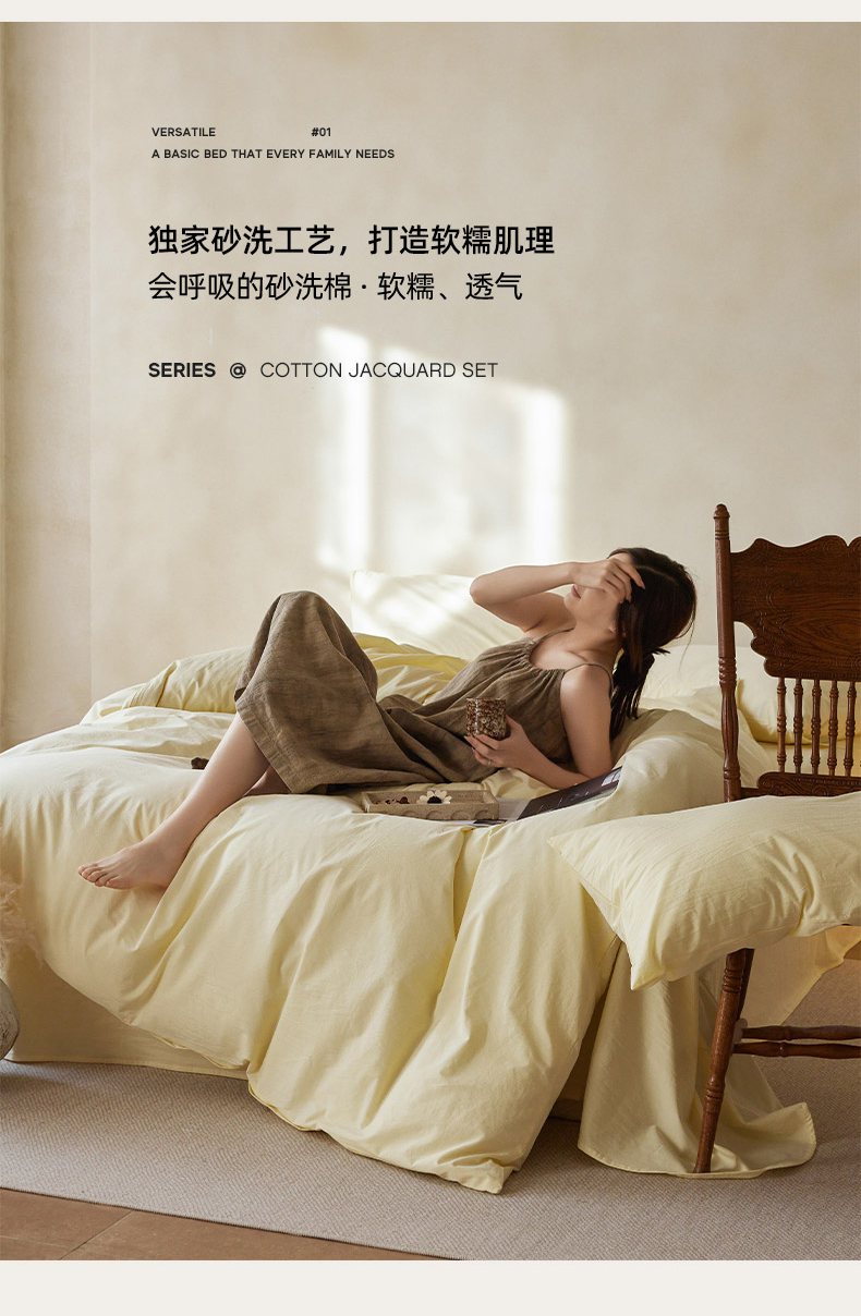 (总)轩和家居 2025新款全棉高支旧感砂洗长绒棉四件套,薄樱粉,淡黄色,暮烟灰,墨染灰,落栗棕,霁兰色,豆沙色,浅云白,青绿色,秋麦色,松石绿,天空蓝,雾海蓝,细雨灰