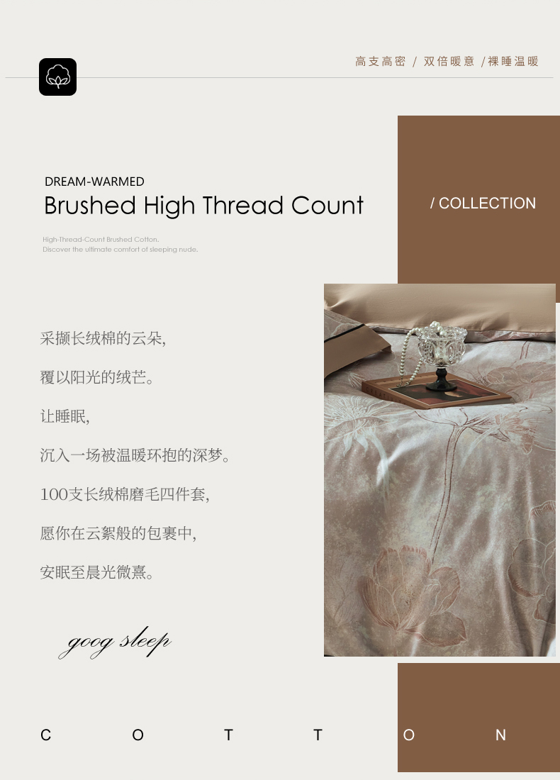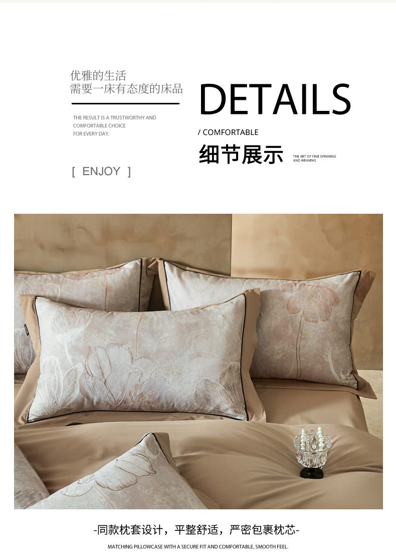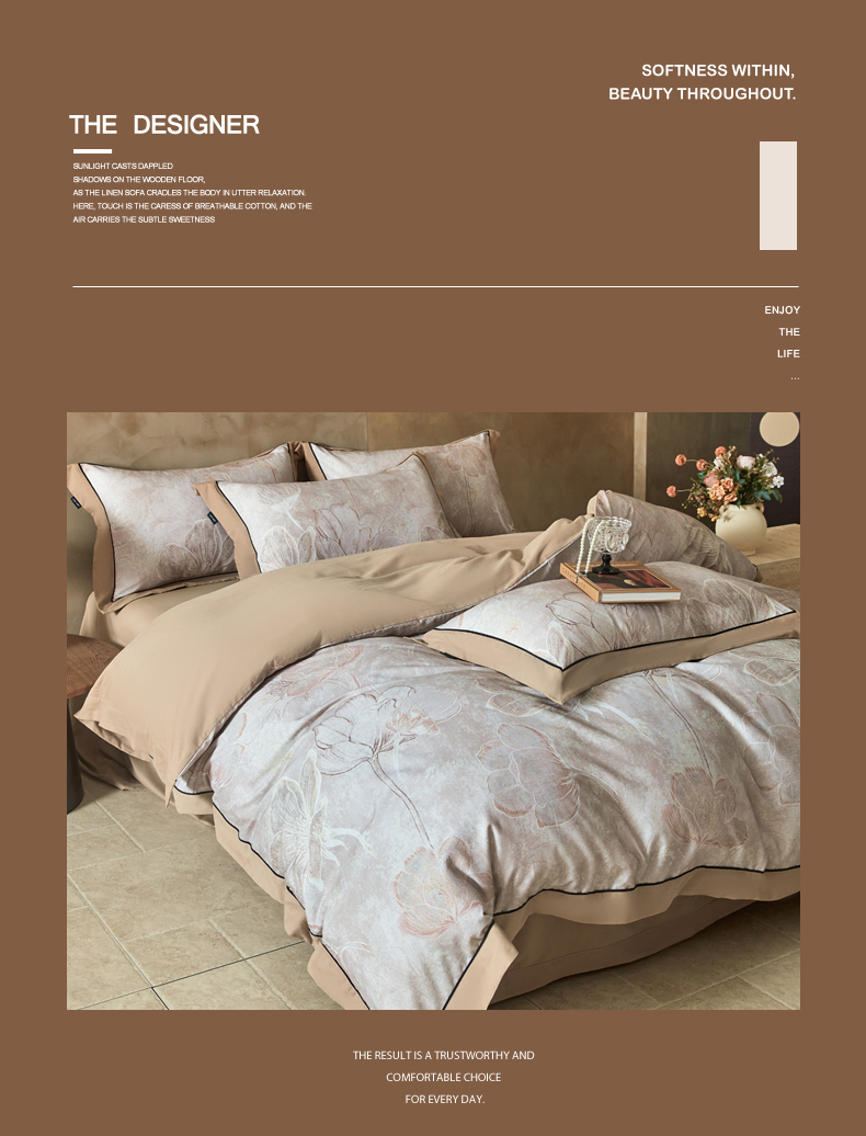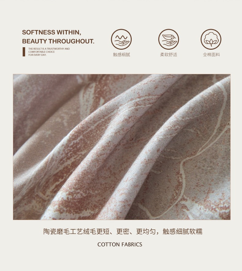 商品名称:洺兰家居 2026年新疆长绒棉100支秋冬款轻磨毛加厚保暖工艺款四件套床上用品 羽纱-卡其