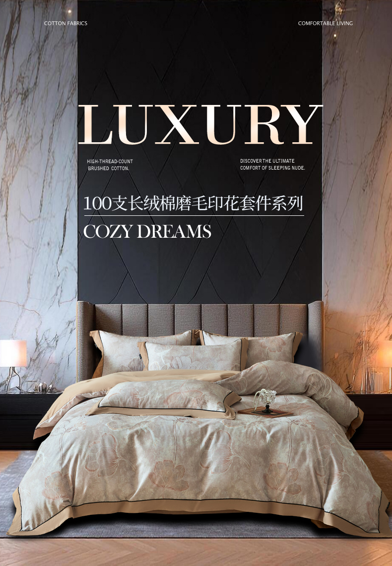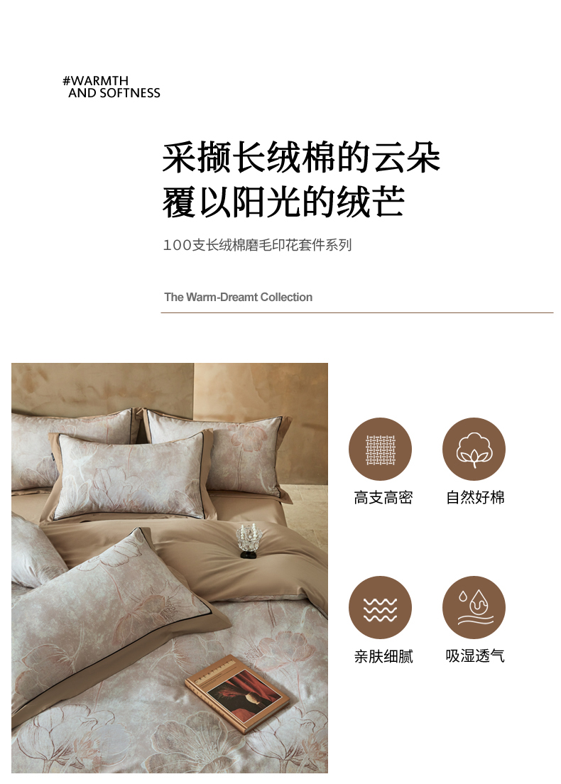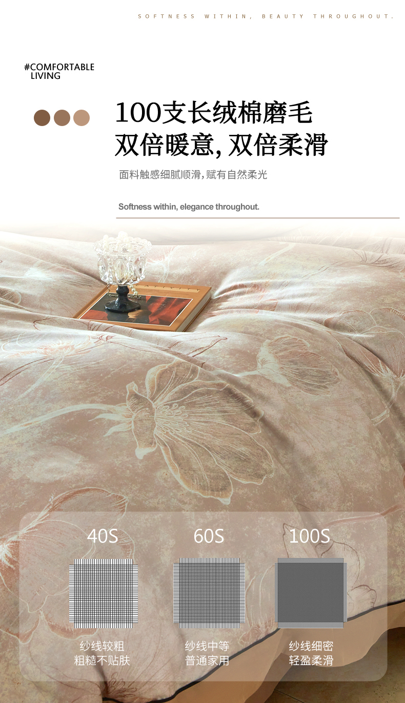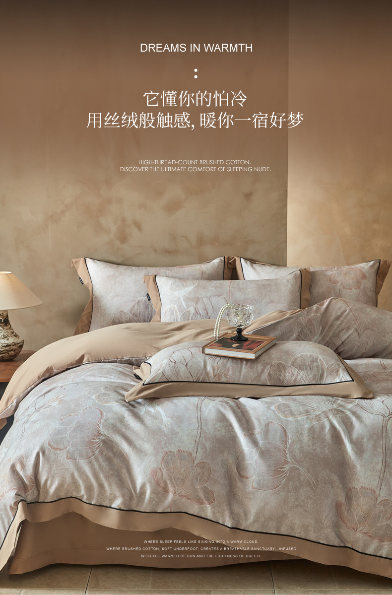 (总)洺兰家居 2026年新疆长绒棉100支秋冬款轻磨毛加厚保暖工艺款四件套床上用品,路易斯-米,千屿-曼卡粉,一见倾心-米,羽纱-卡其,织梦-粉,栀子花开-绿