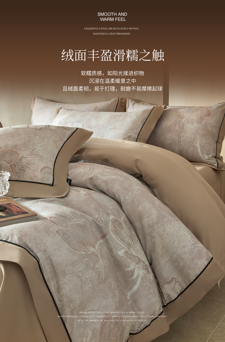 洺兰家居 2026年新疆长绒棉100支秋冬款轻磨毛加厚保暖工艺款四件套床上用品 羽纱-卡其