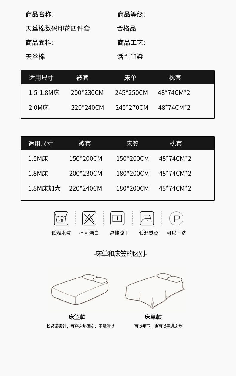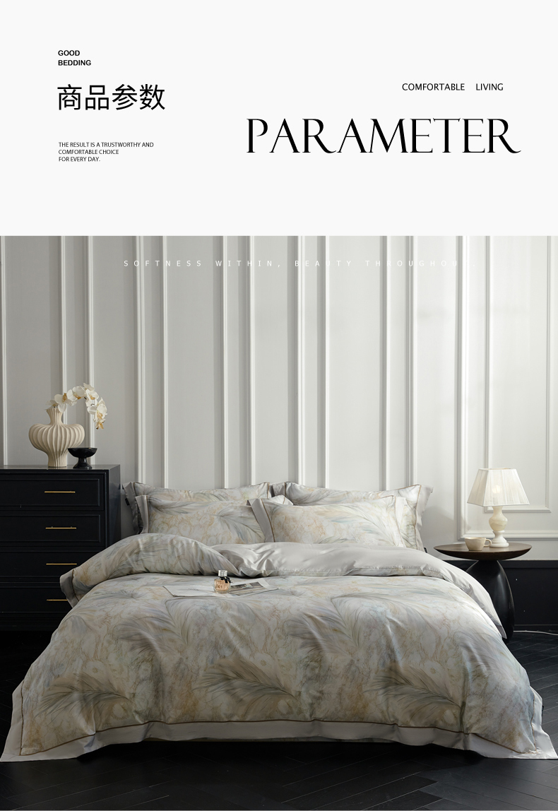 商品名称:洺兰家居 2026年新疆长绒棉100支天丝棉高端工艺款床单床笠四件套床上用品 羽墨
