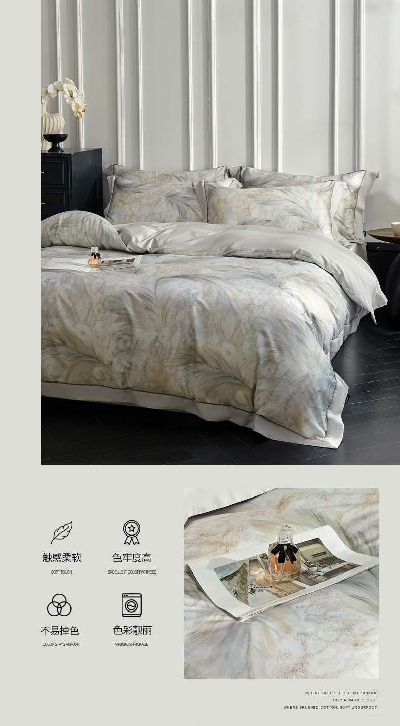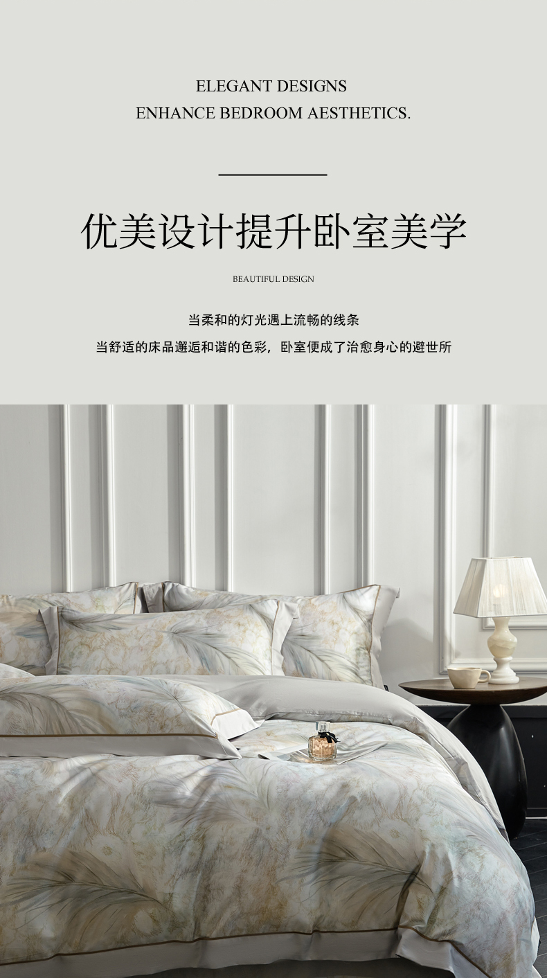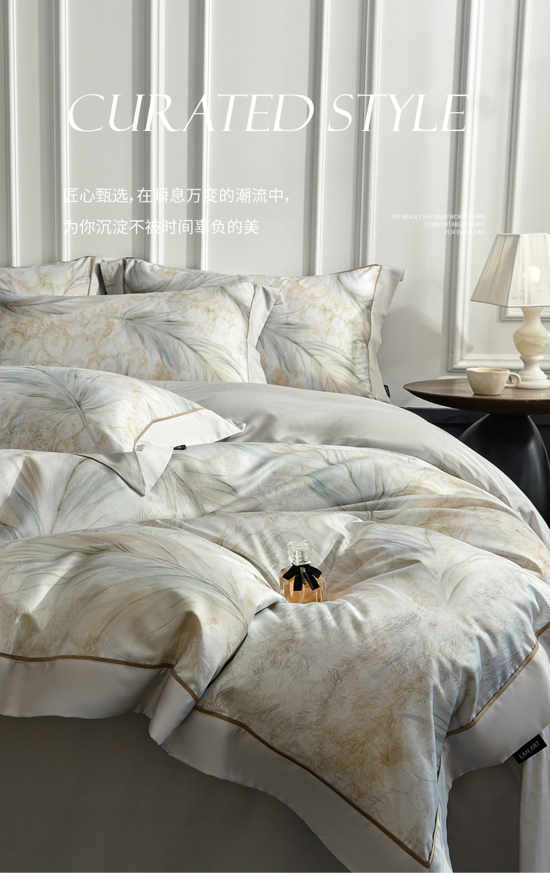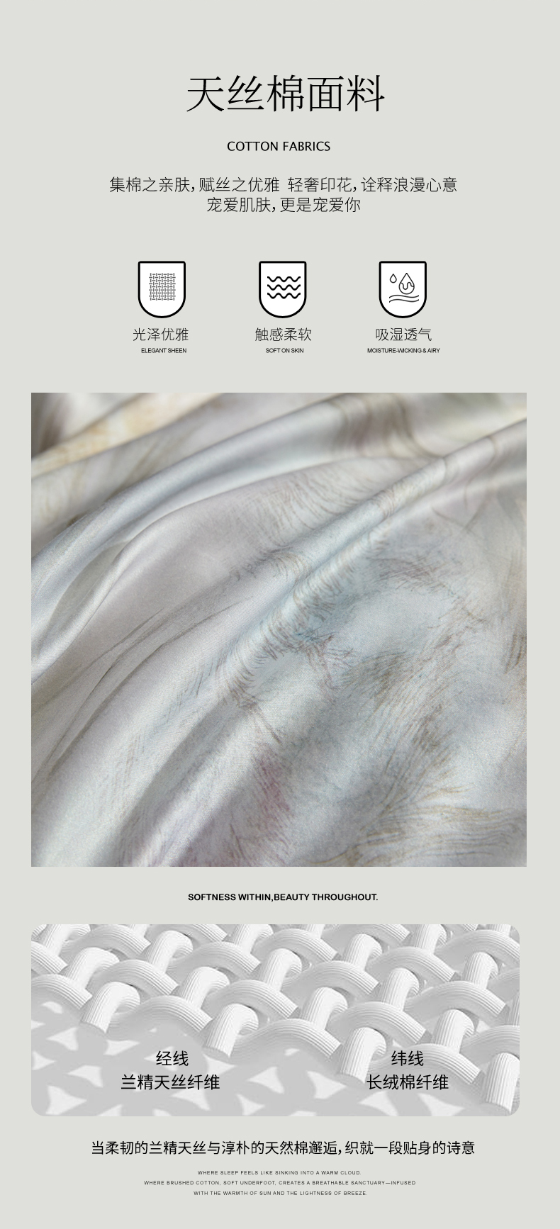 洺兰家居 2026年新疆长绒棉100支天丝棉高端工艺款床单床笠四件套床上用品 羽墨