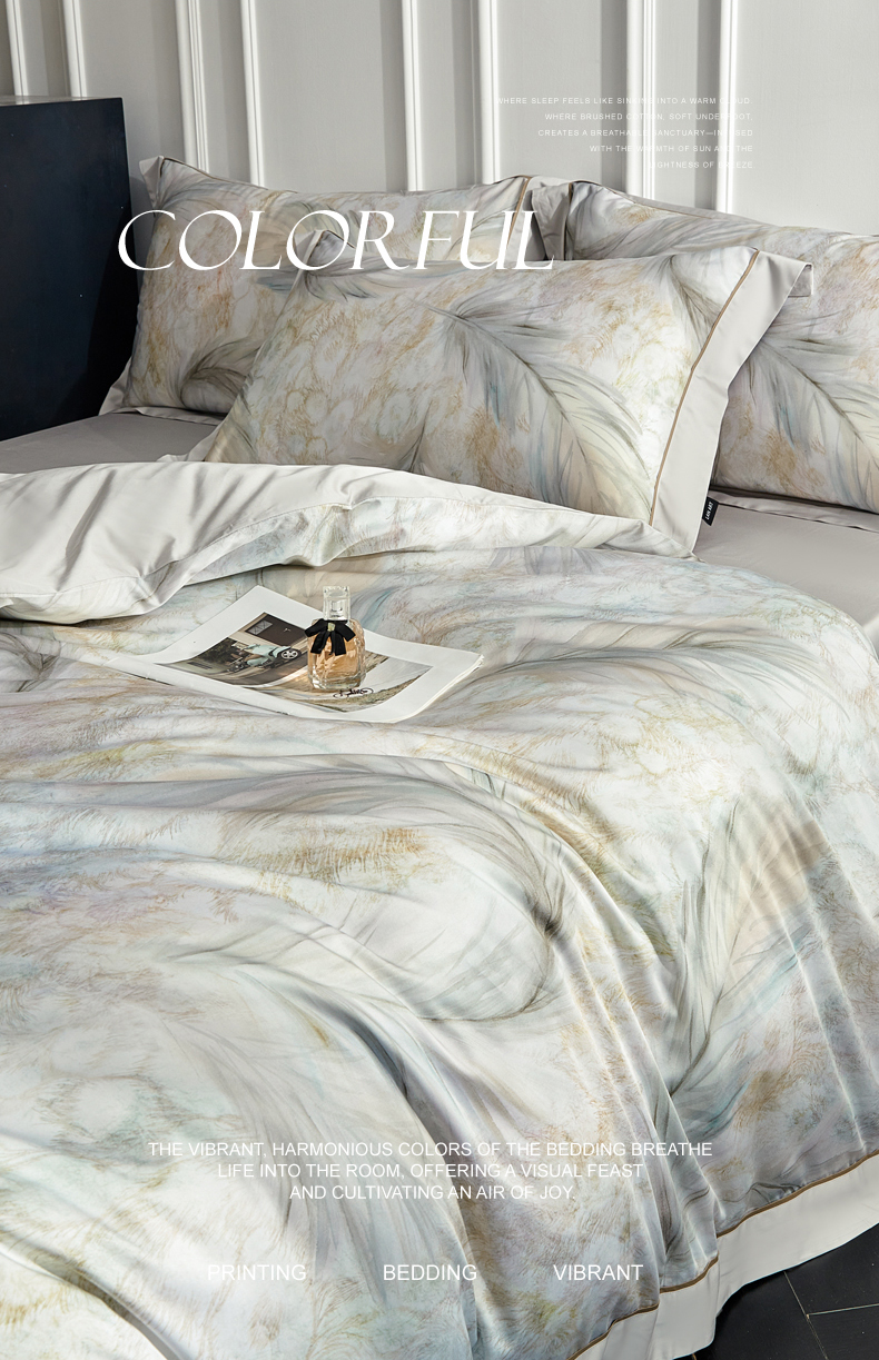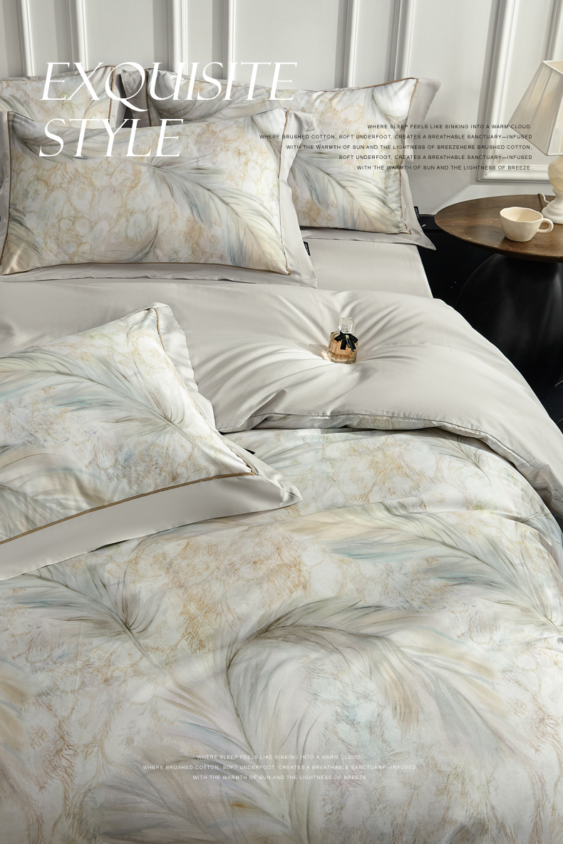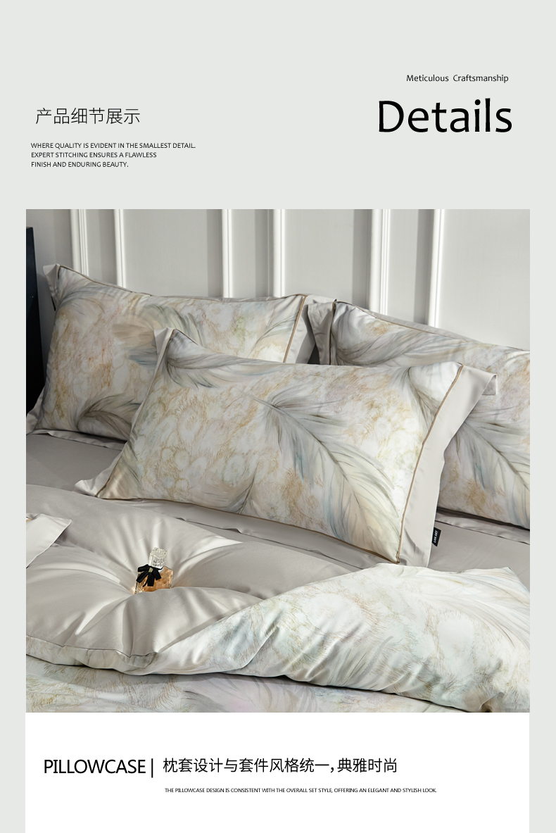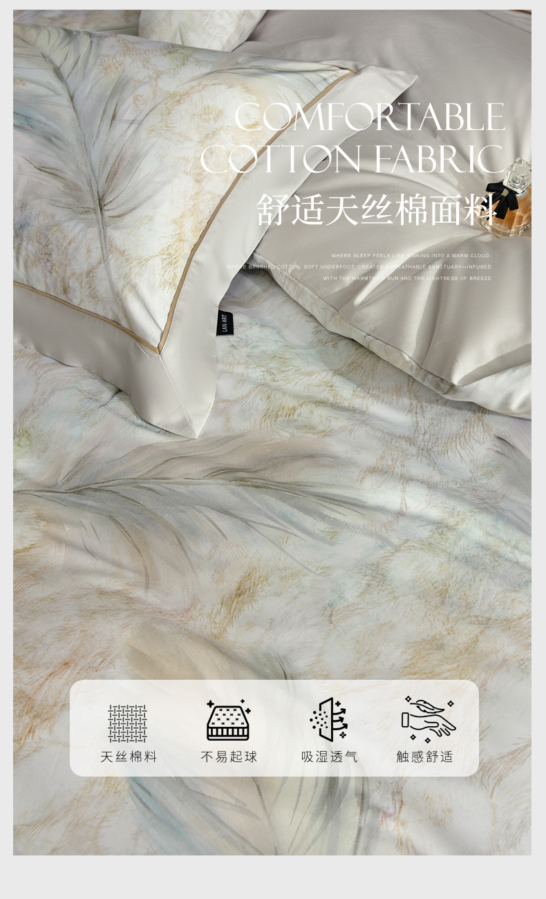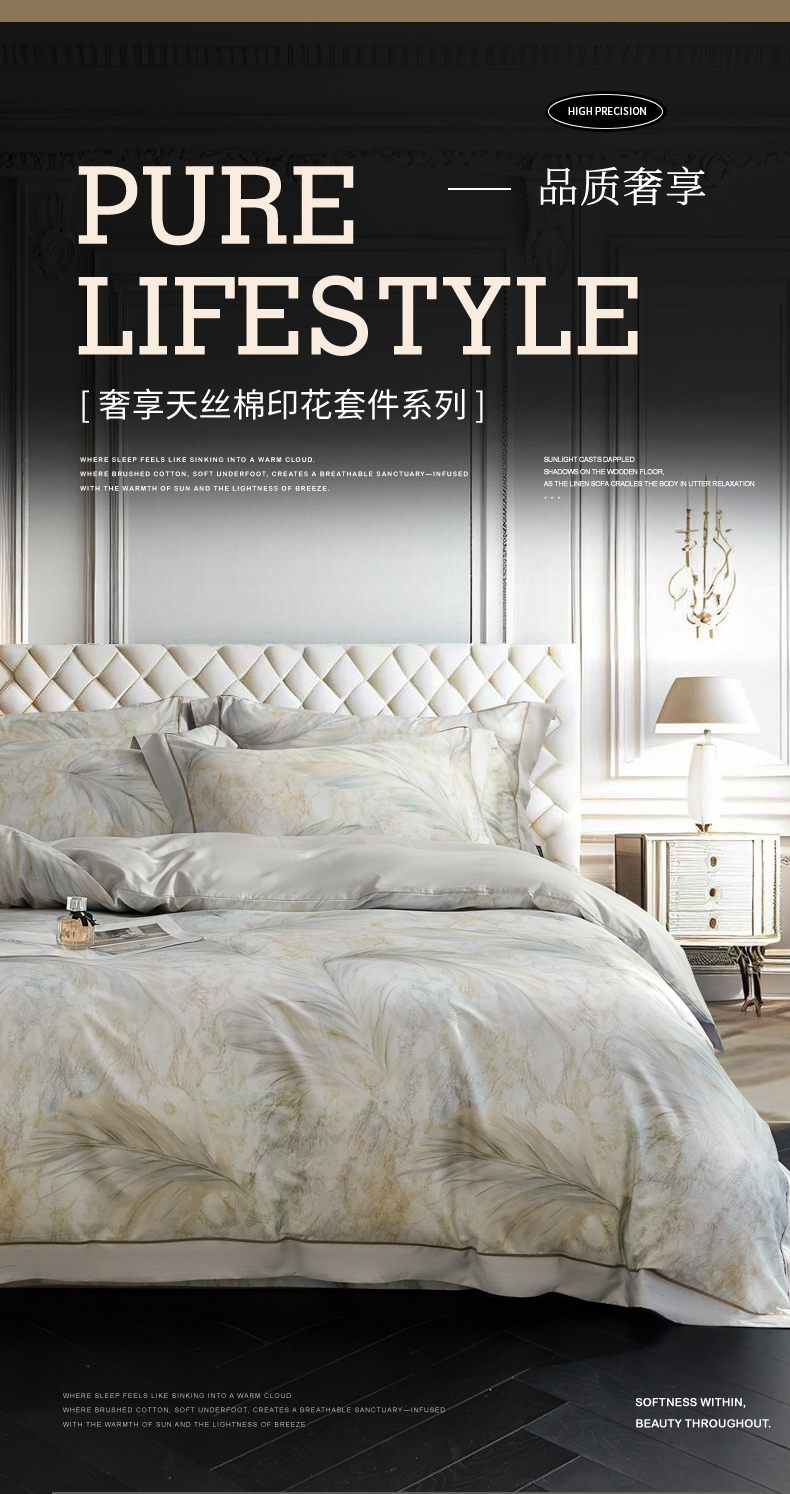 洺兰家居 2026年新疆长绒棉100支天丝棉高端工艺款床单床笠四件套床上用品 羽墨