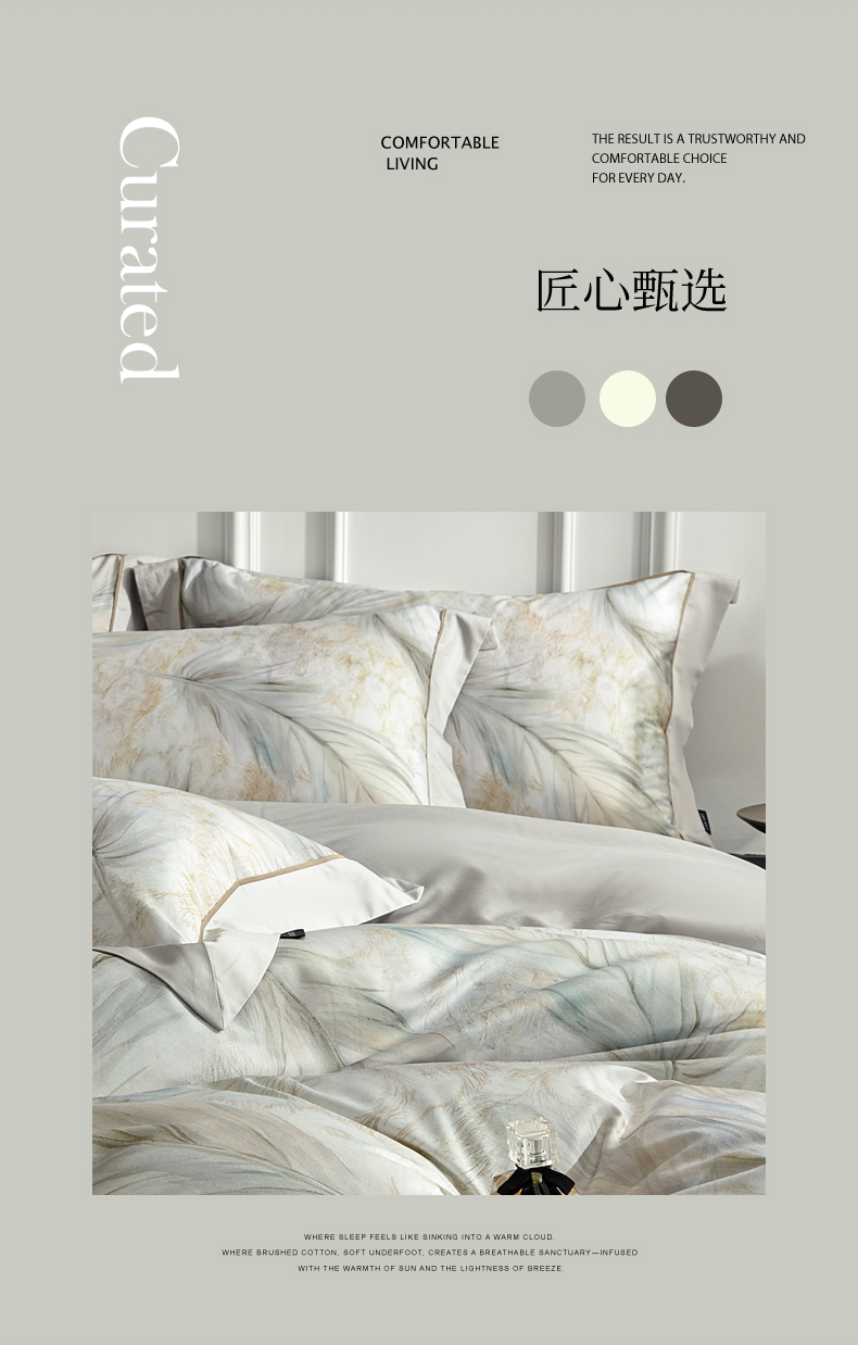 (总)洺兰家居 2026年新疆长绒棉100支秋冬款轻磨毛加厚保暖工艺款四件套床上用品,路易斯-米,千屿-曼卡粉,一见倾心-米,羽纱-卡其,织梦-粉,栀子花开-绿