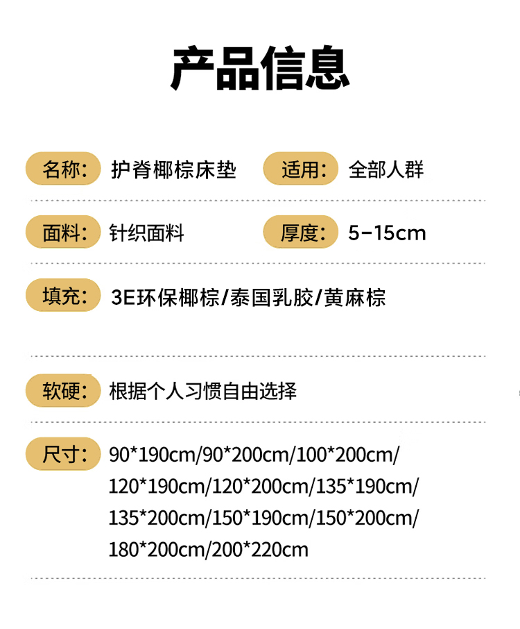 (总)时奥家纺 2023新款针织棉椰棕床垫(包邮),3分棕(5cm)白,3分棕+1分胶(6cm)白,3分棕+2分乳胶-(7cm)白,3分棕+3分乳胶(8cm)白,5分棕(8cm)白,5分棕+1分乳胶(8cm)白,5分棕+2分乳胶(10cm)白,5分棕+3分乳胶(11cm)白,7分棕(10cm)白,7分棕+1分乳胶(10cm)白,7分棕+2分乳胶(12cm)白,7分棕+3分乳胶(13cm)白,10分棕(12cm)白,10分棕+1分乳胶(13cm)白,10分棕+2分乳胶(14cm)白,10分棕+3分乳胶(15cm)白,3分棕(5cm),3分棕+1分胶(6cm),3分棕+2分乳胶-(7cm),3分棕+3分乳胶(8cm),5分棕(8cm),5分棕+1分乳胶(8cm),5分棕+2分乳胶(10cm),5分棕+3分乳胶(11cm),7分棕(10cm),7分棕+1分乳胶(10cm),7分棕+2分乳胶(12cm),7分棕+3分乳胶(13cm),10分棕(12cm),10分棕+1分乳胶(13cm),10分棕+2分乳胶(14cm),10分棕+3分乳胶(15cm),3分棕(5cm),3分棕+1分胶(6cm),3分棕+2分乳胶-(7cm),3分棕+3分乳胶(8cm),5分棕(8cm),5分棕+1分乳胶(8cm),5分棕+2分乳胶(10cm),5分棕+3分乳胶(11cm),7分棕(10cm),7分棕+1分乳胶(10cm),7分棕+2分乳胶(12cm),7分棕+3分乳胶(13cm),10分棕(12cm),10分棕+1分乳胶(13cm),10分棕+2分乳胶(14cm),10分棕+3分乳胶(15cm)