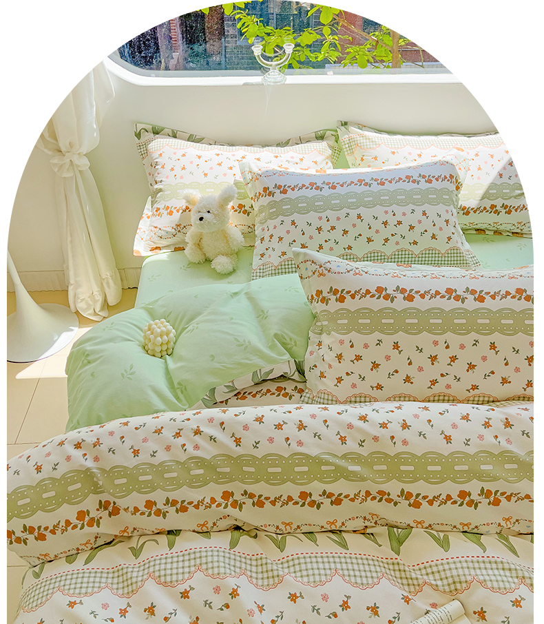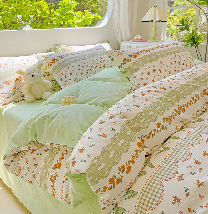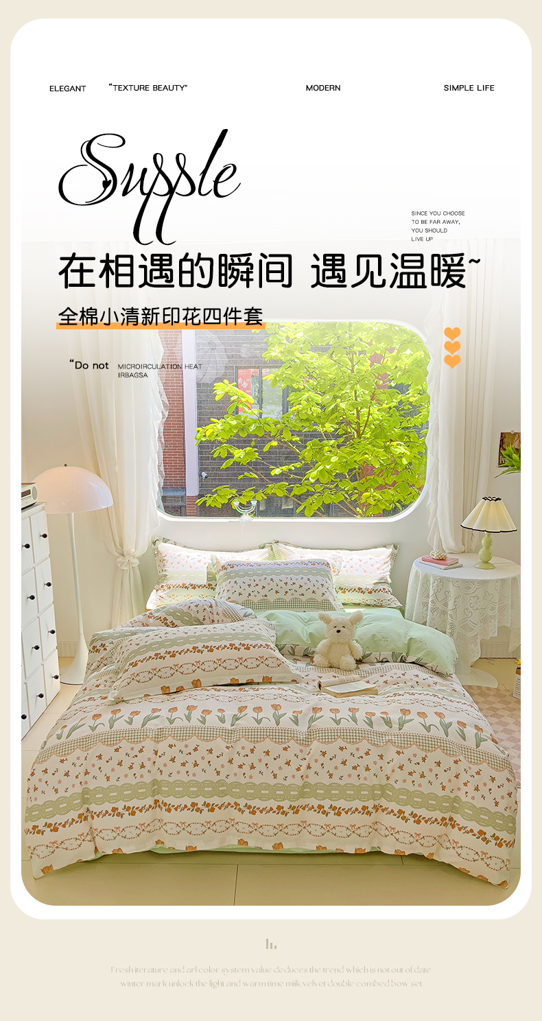 曲之慕 2026春夏新款全棉纯棉小清新印花系列四件套床单床笠 甜香花