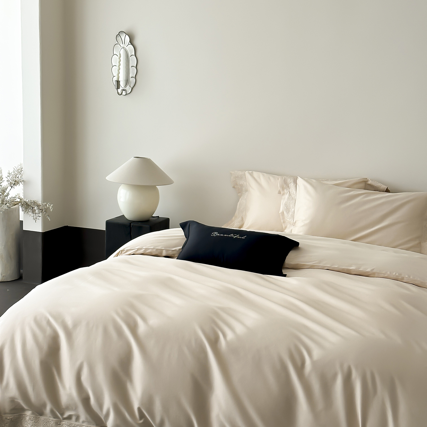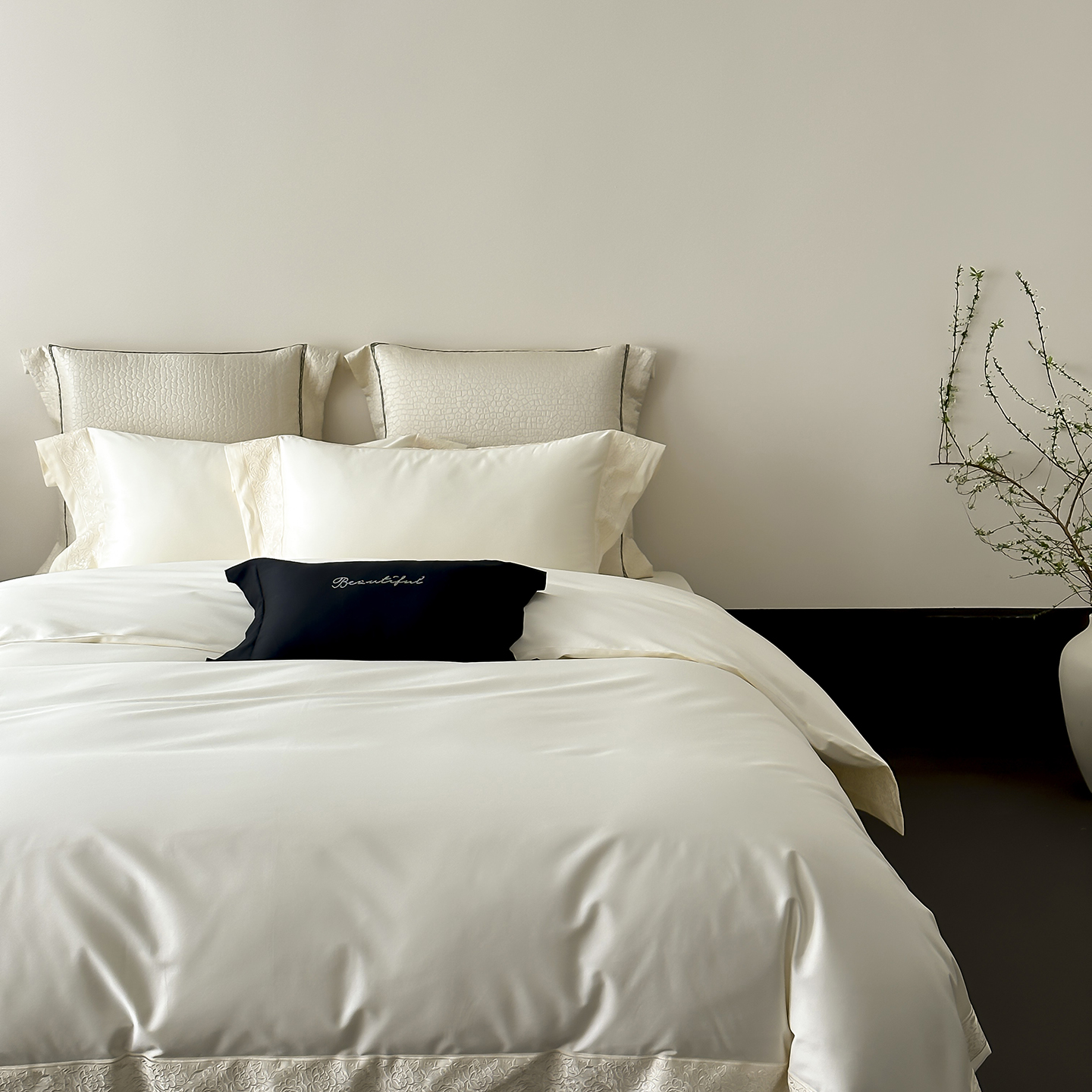 (总)佳汐蓝 2025春夏新品双层皱皱纱刺绣+织带+荷叶边四件套--白茶花,奶白,曲奇