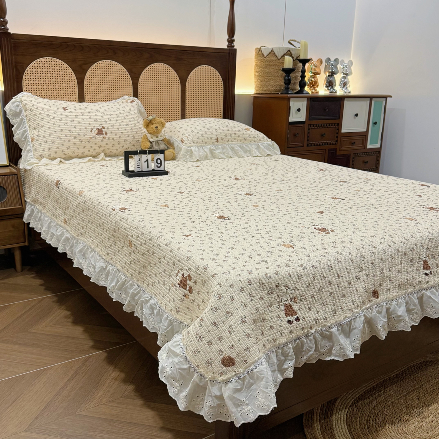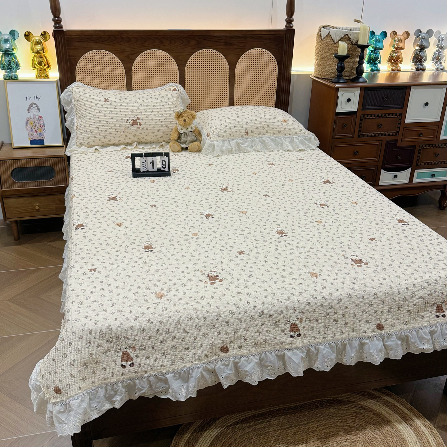 (总)床盖工厂店 2025新款法式双面全面填充棉花床盖三件套