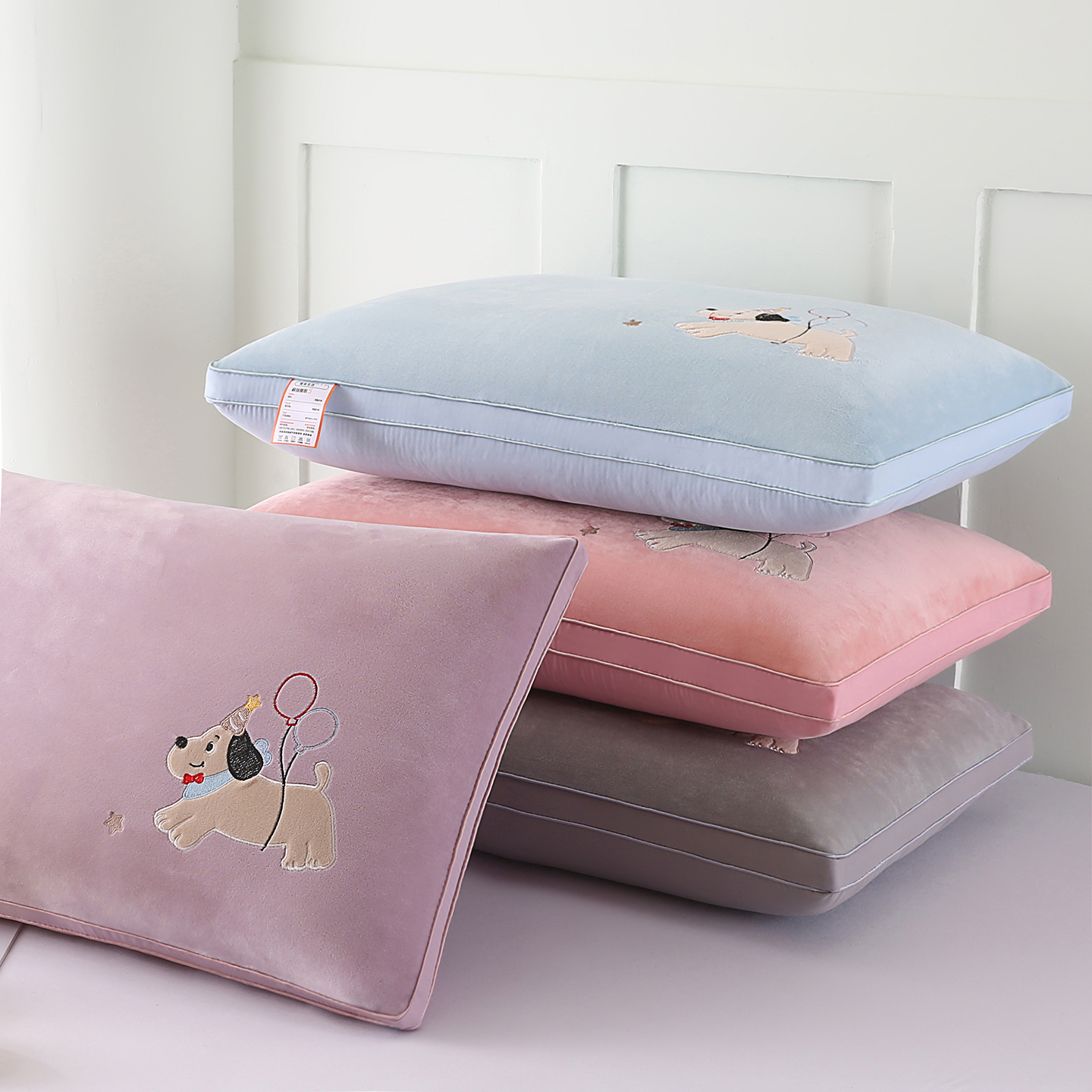 (总)永乐枕芯 2025新款儿童枕卡通针织小狗枕芯护颈枕学生枕枕头枕芯,白色