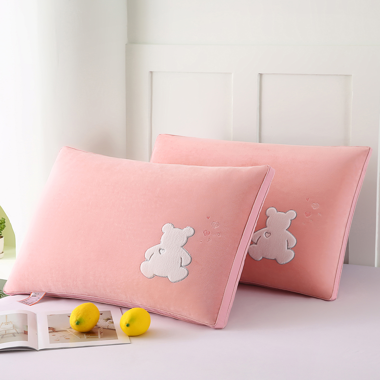 商品名称:永乐枕芯 2025新款热绒款贴布绣枕头枕芯 小熊-粉玉