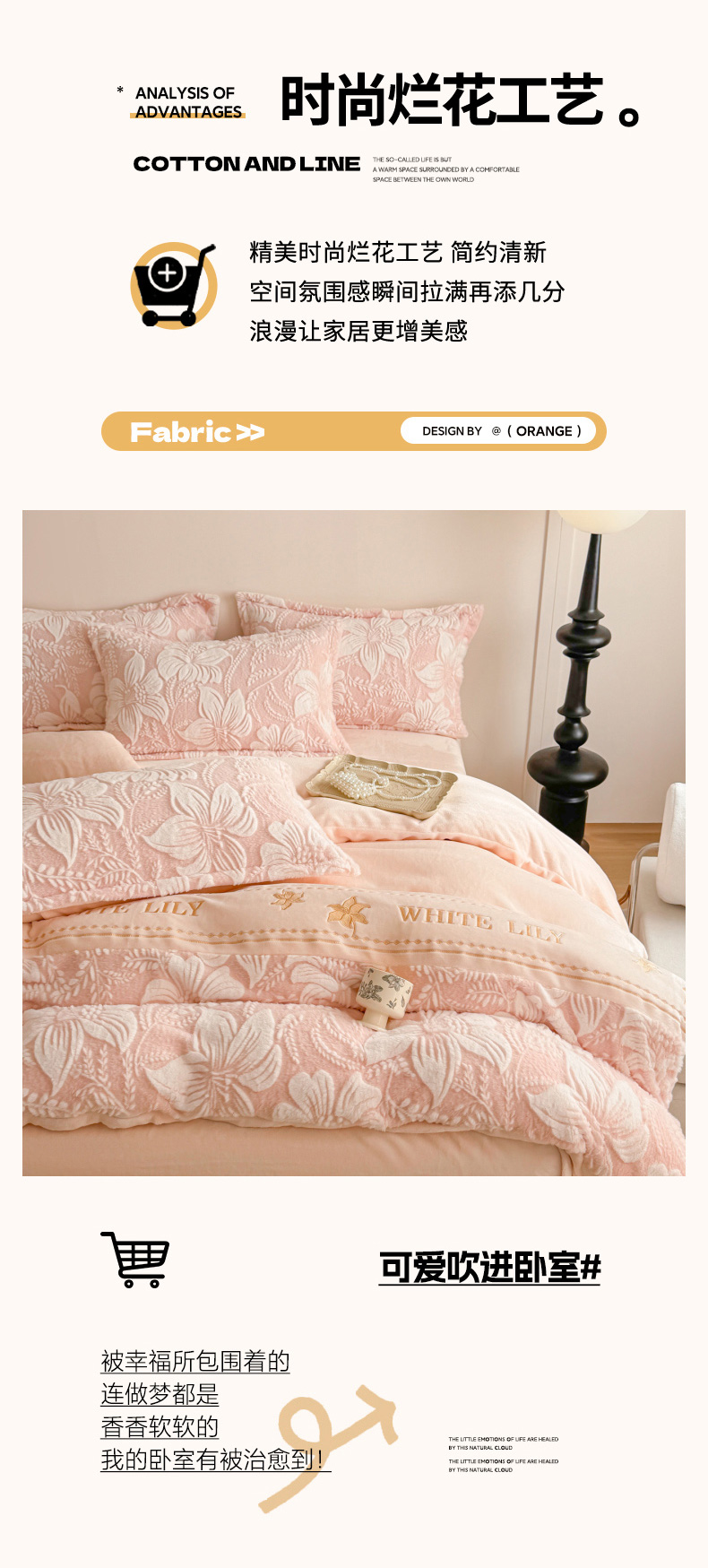 当前位置: 91家纺网 > 商品网购 > 床品套件 > 四件套 > 牛奶绒四件套 > 米可 2025新款兔毛烂花牛奶绒绣花四件套 银杏-粉