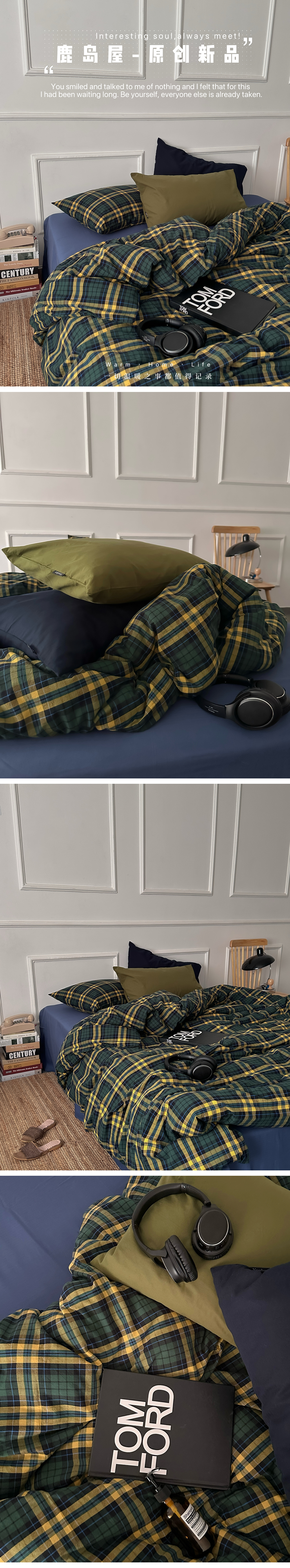 当前位置: 91家纺网 > 商品网购 > 床品套件 > 四件套 > 色织四件套 > 柚可家居 2026新款色织水洗棉全棉四件套-鹿岛屋(券后标准不低于258元,加大不低于278元)会员-5元 鹿岛屋(枕套格子+藏蓝)