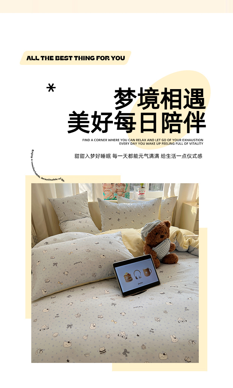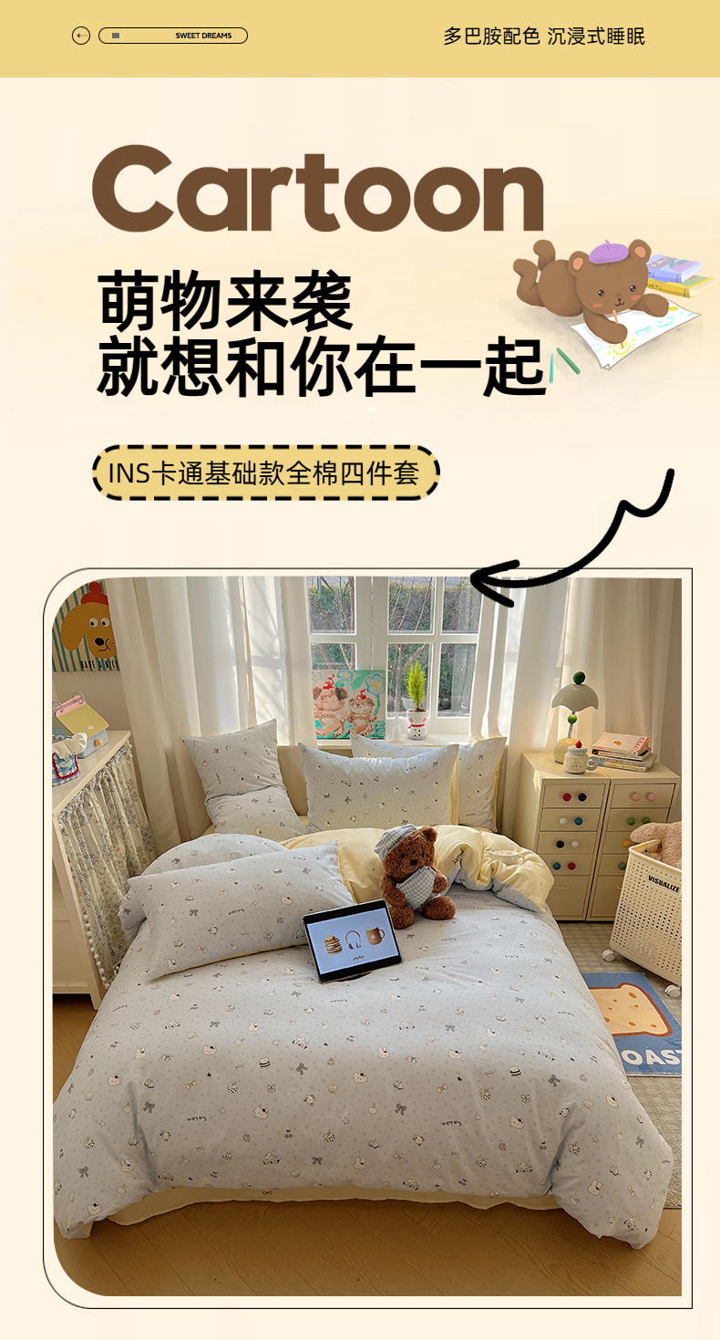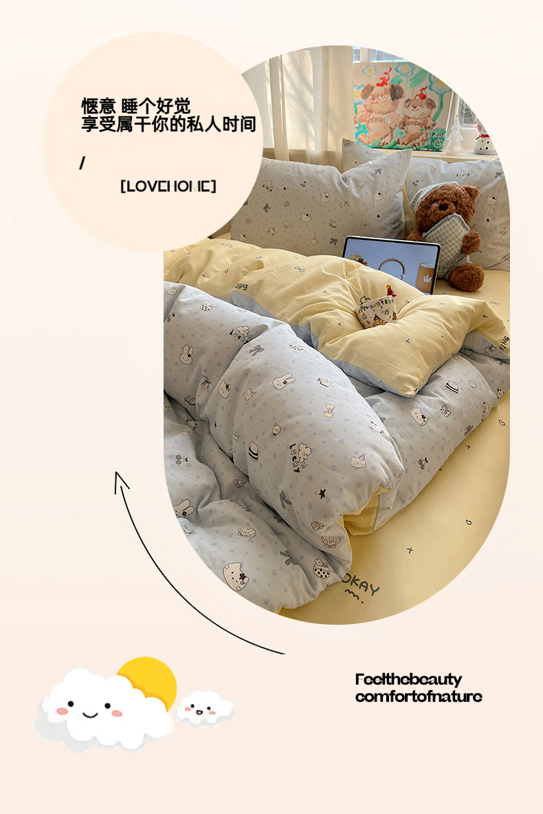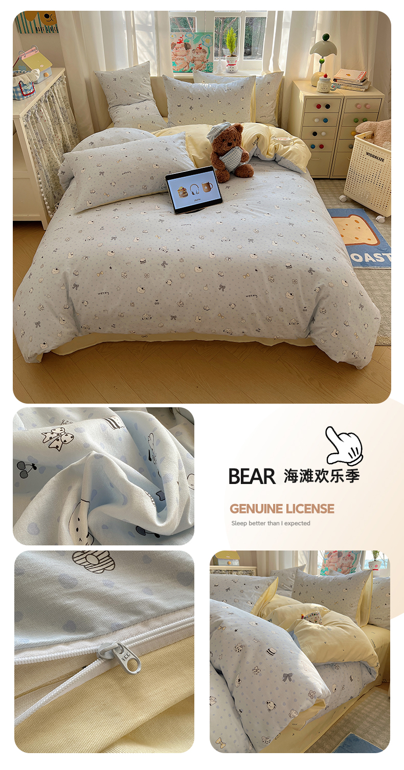 当前位置: 91家纺网 > 商品网购 > 床品套件 > 四件套 > 全棉普通四件套 > 六巷胡同 2026春夏新款INS卡通基础款全棉纯棉四件套-系列一 海滩欢乐季
