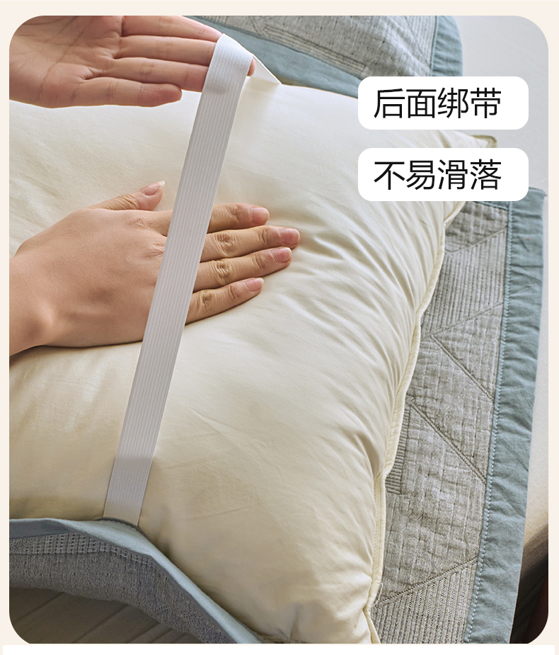 商品名称:棠薇家纺 2025新款提花绑带款枕巾棉纱布枕巾夹棉枕头巾 纯色三角灰