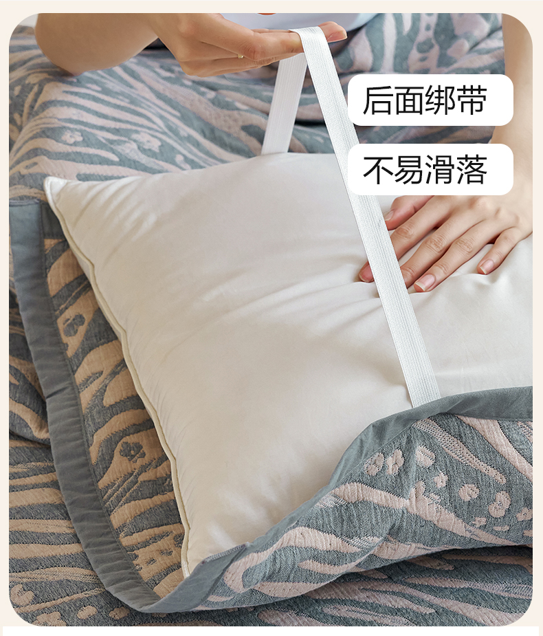 商品名称:棠薇家纺 2025新款提花绑带款枕巾棉纱布枕巾夹棉枕头巾 木影驼兰