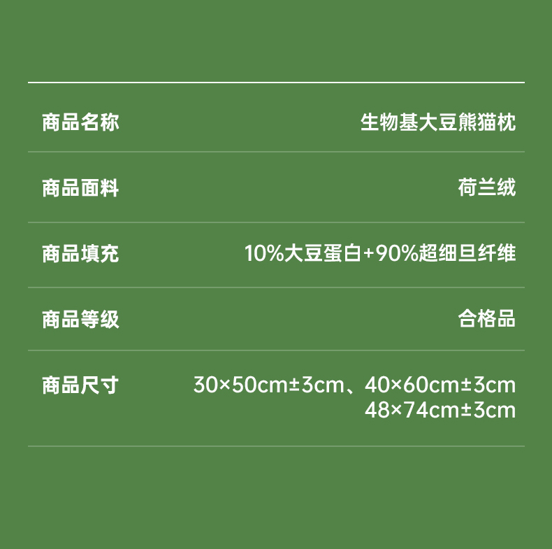 商品名称:(总)北鸣有鱼枕芯馆 2025新款荷兰绒生物基大豆熊猫枕枕头枕芯