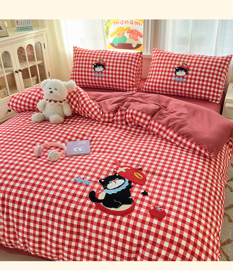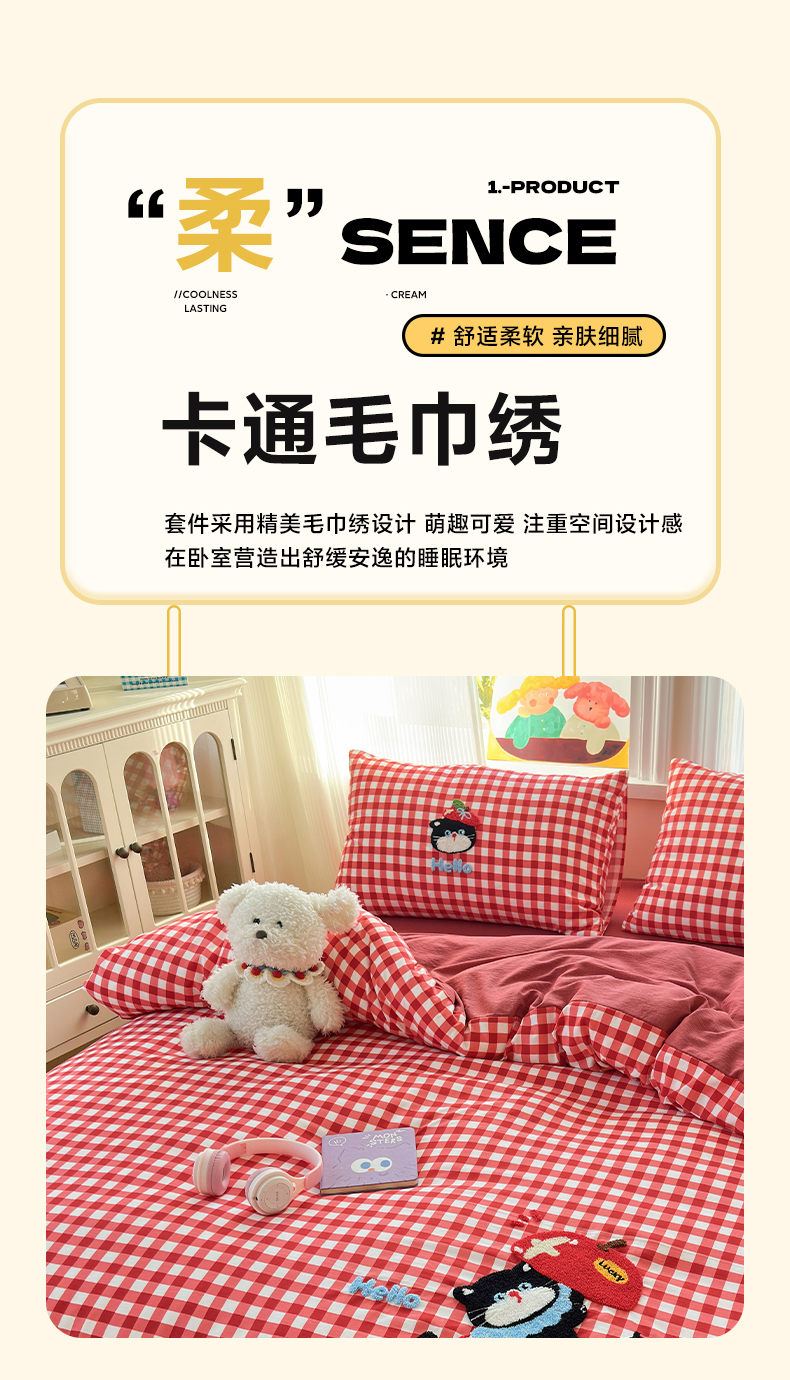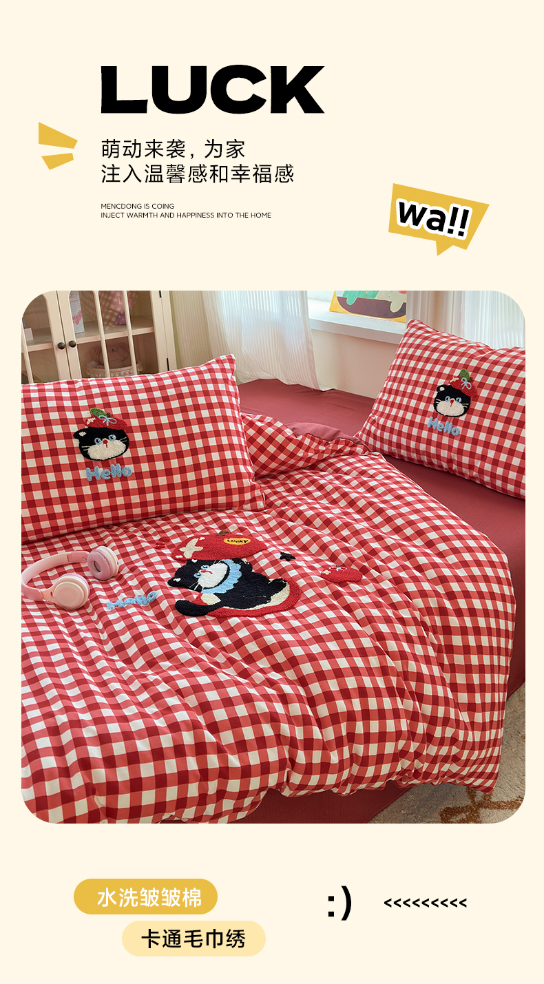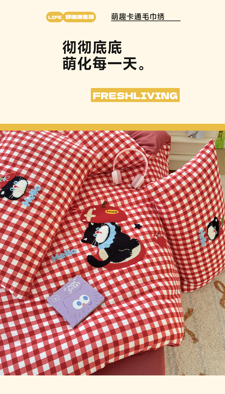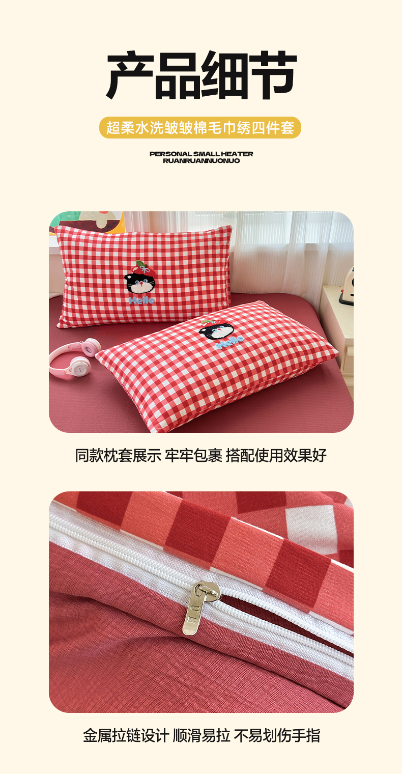 当前位置: 91家纺网 > 商品网购 > 床品套件 > 四件套 > 水洗棉四件套 > 奈颜 2026新款超柔水洗皱皱棉毛巾绣四件套 苹果猫咪