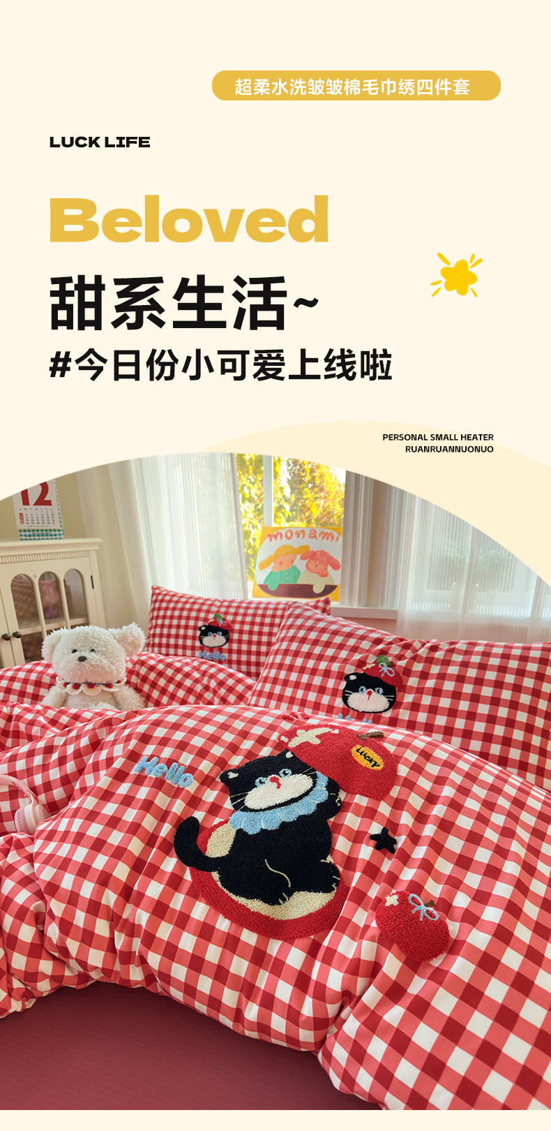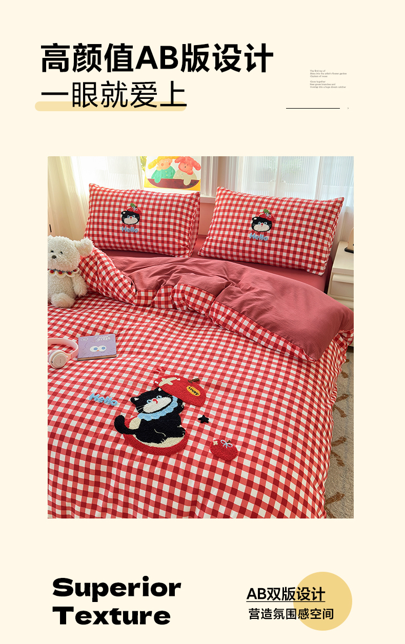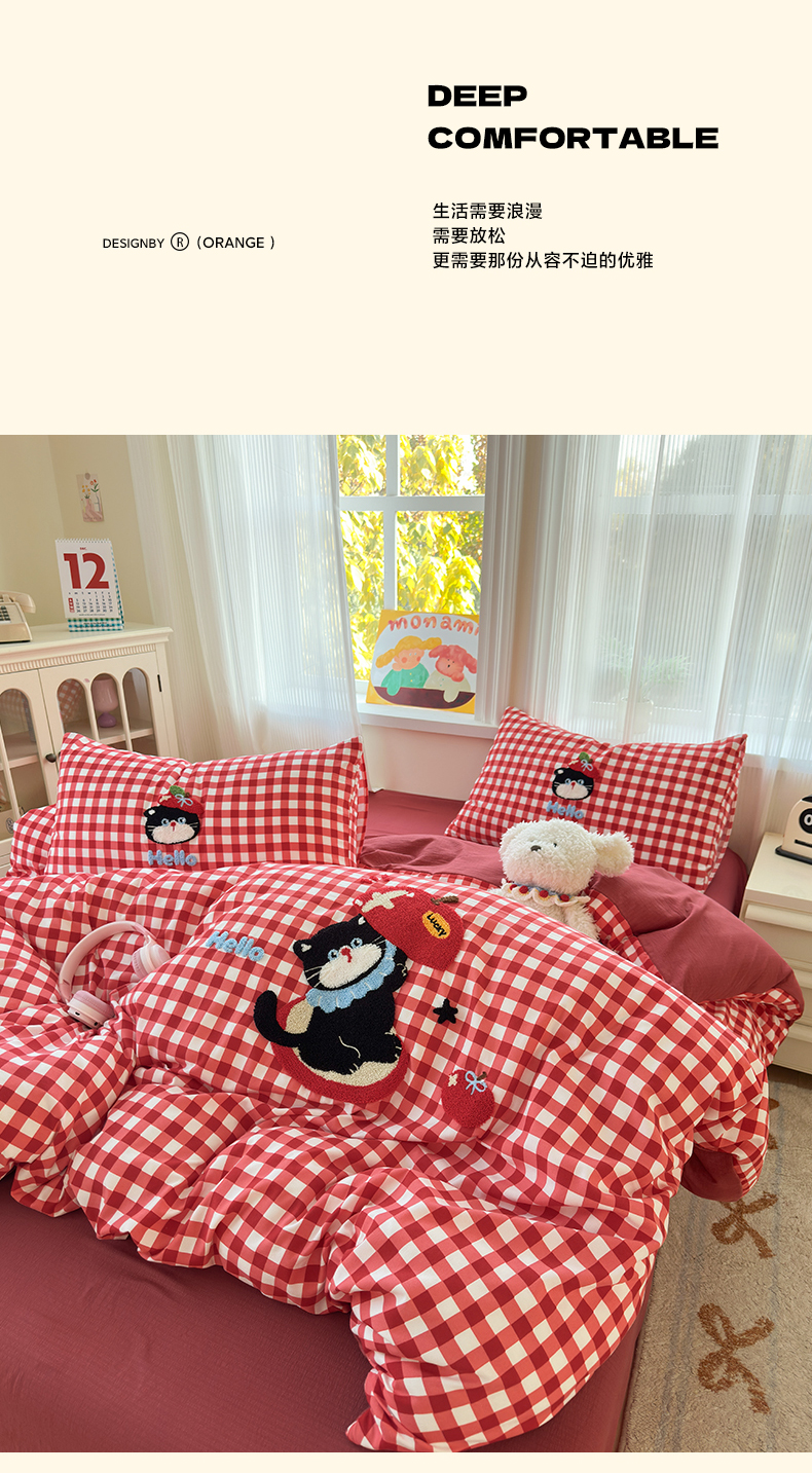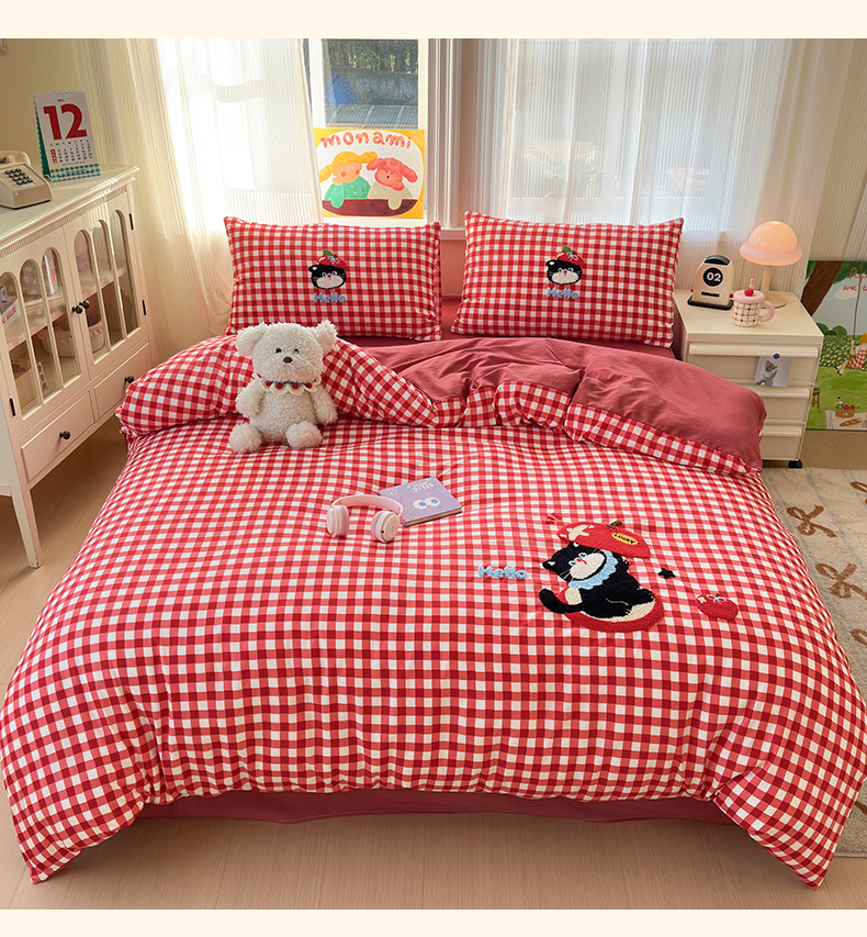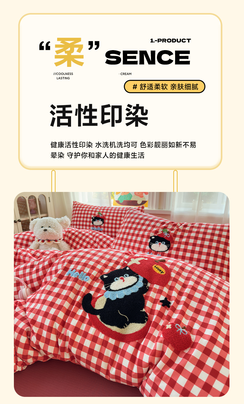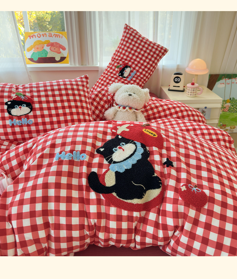 当前位置: 91家纺网 > 商品网购 > 床品套件 > 四件套 > 水洗棉四件套 > 奈颜 2026新款超柔水洗皱皱棉毛巾绣四件套 苹果猫咪