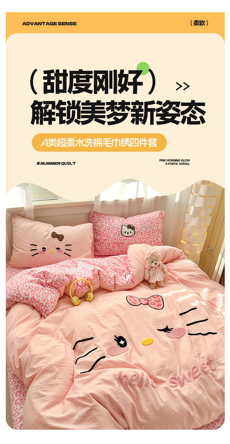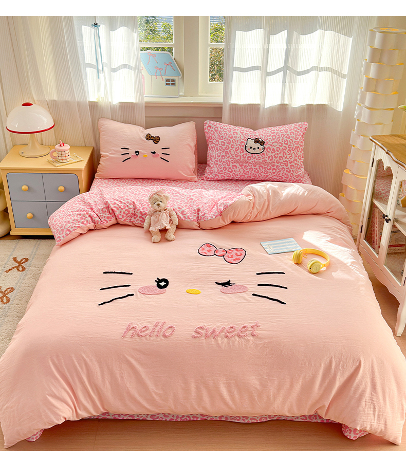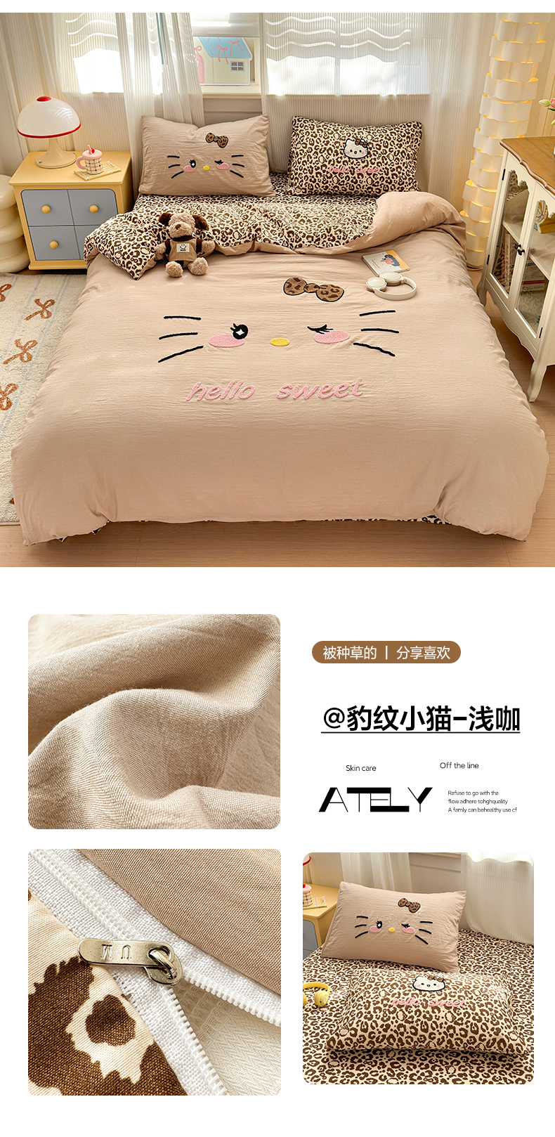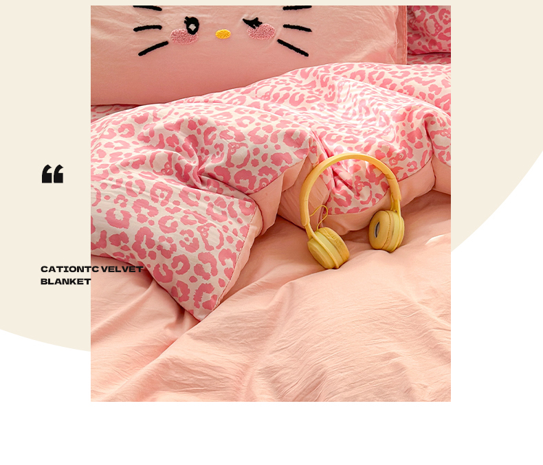 当前位置: 91家纺网 > 商品网购 > 床品套件 > 四件套 > 水洗棉四件套 > 奈颜 2026新款A类水洗棉大版毛巾绣豹纹小猫四件套--影棚图 豹纹小猫-粉