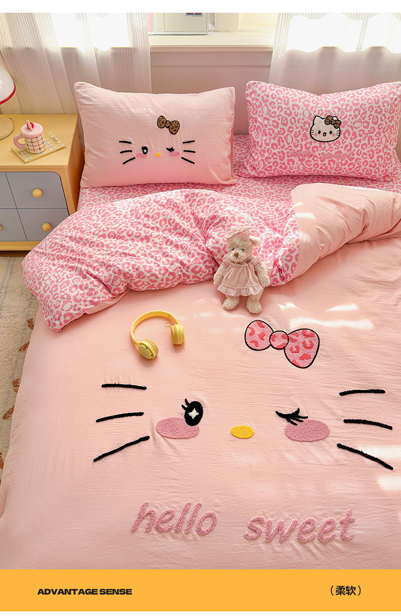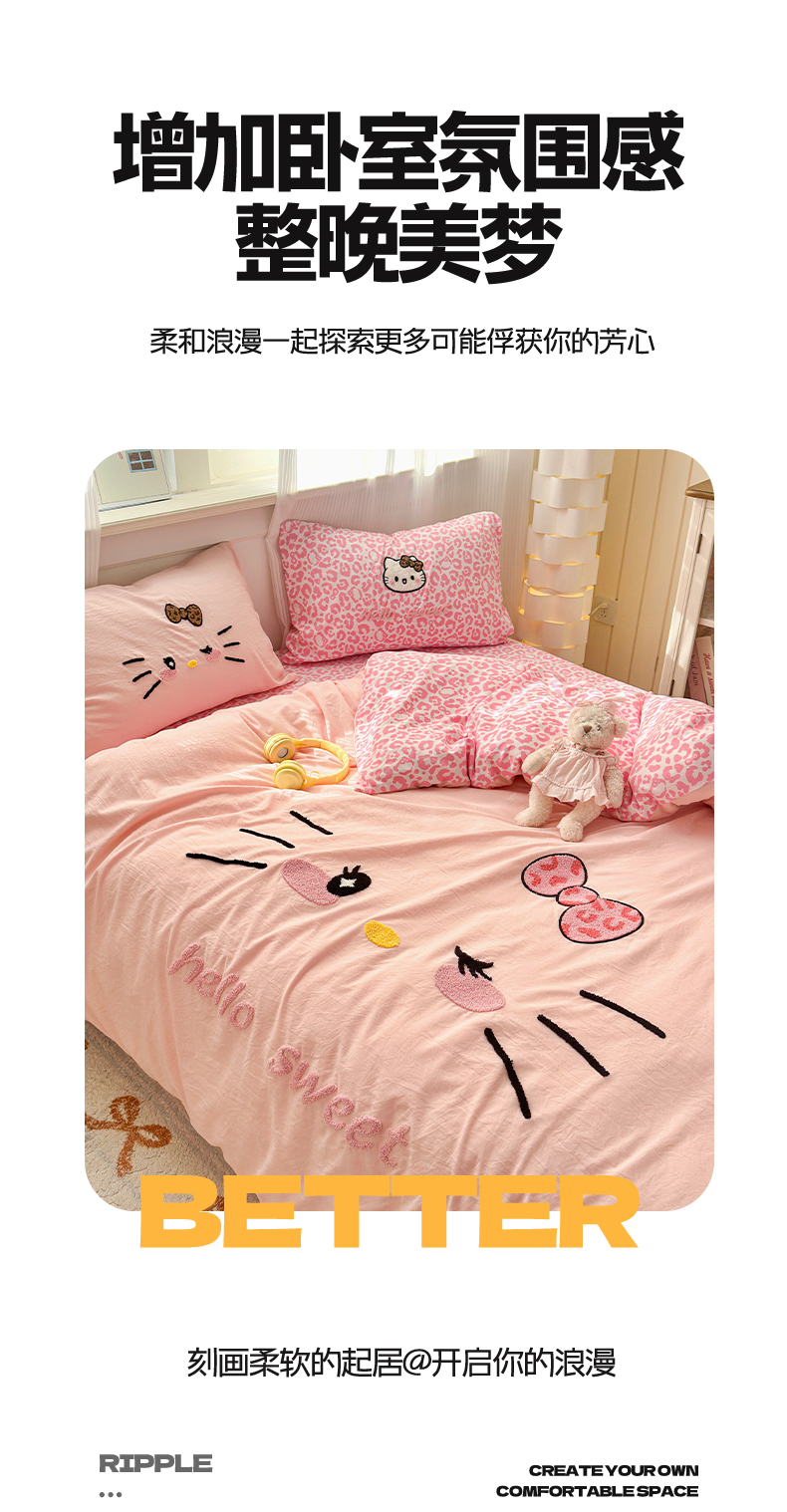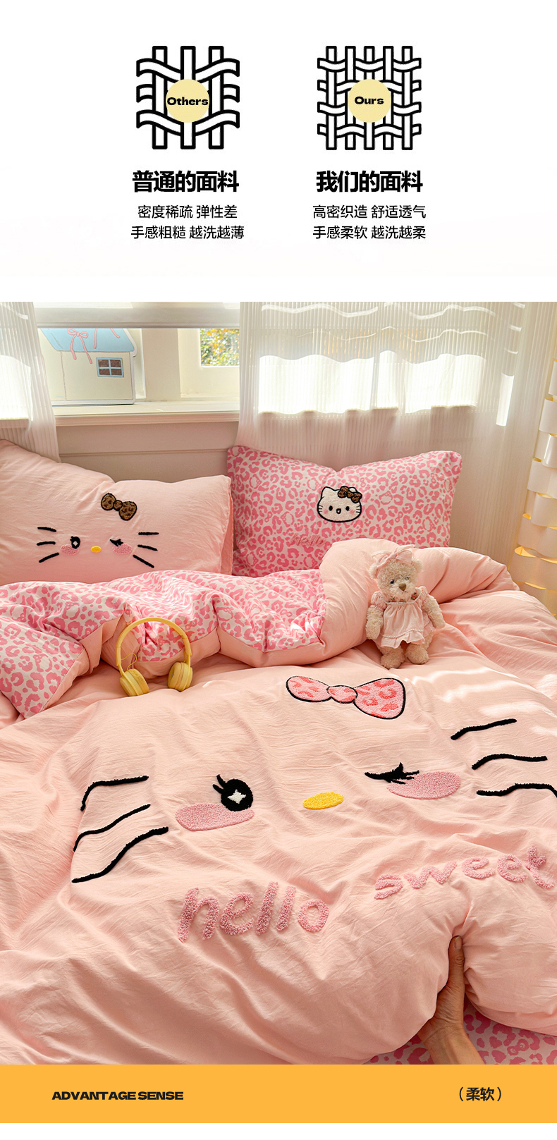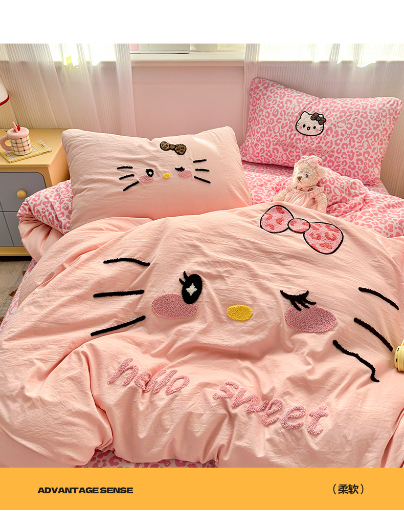 当前位置: 91家纺网 > 商品网购 > 床品套件 > 四件套 > 水洗棉四件套 > 奈颜 2026新款A类水洗棉大版毛巾绣豹纹小猫四件套--影棚图 豹纹小猫-粉