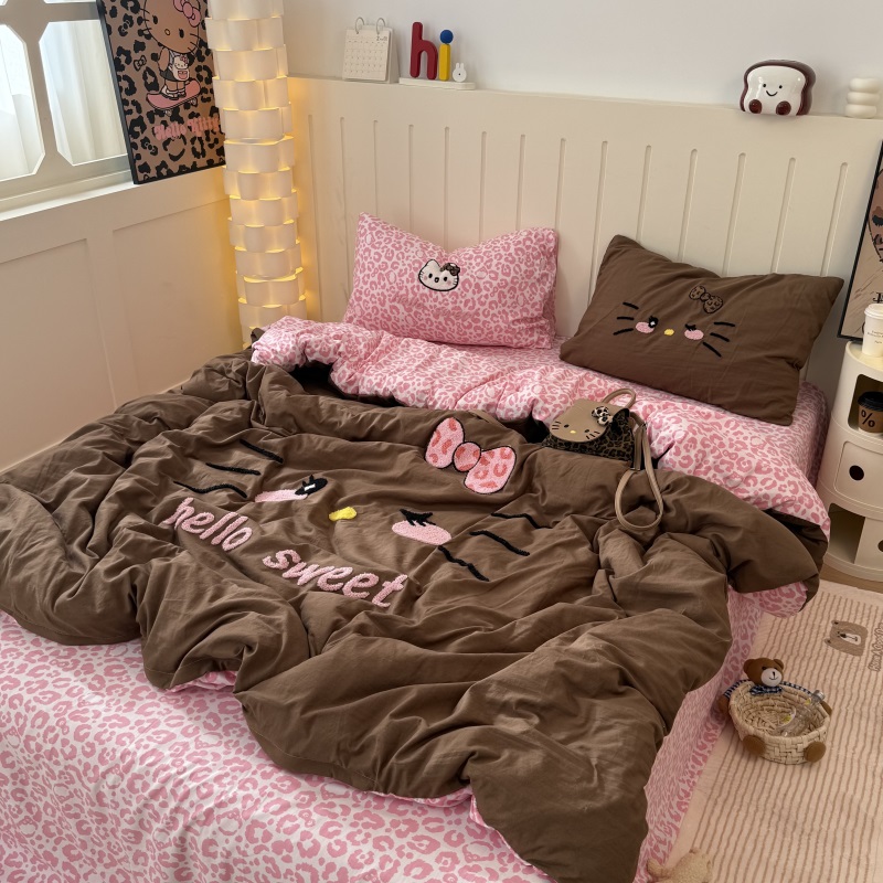 当前位置: 91家纺网 > 商品网购 > 床品套件 > 四件套 > 水洗棉四件套 > 奈颜 2026新款A类水洗棉大版毛巾绣豹纹小猫四件套--实拍图 豹纹小猫-粉咖