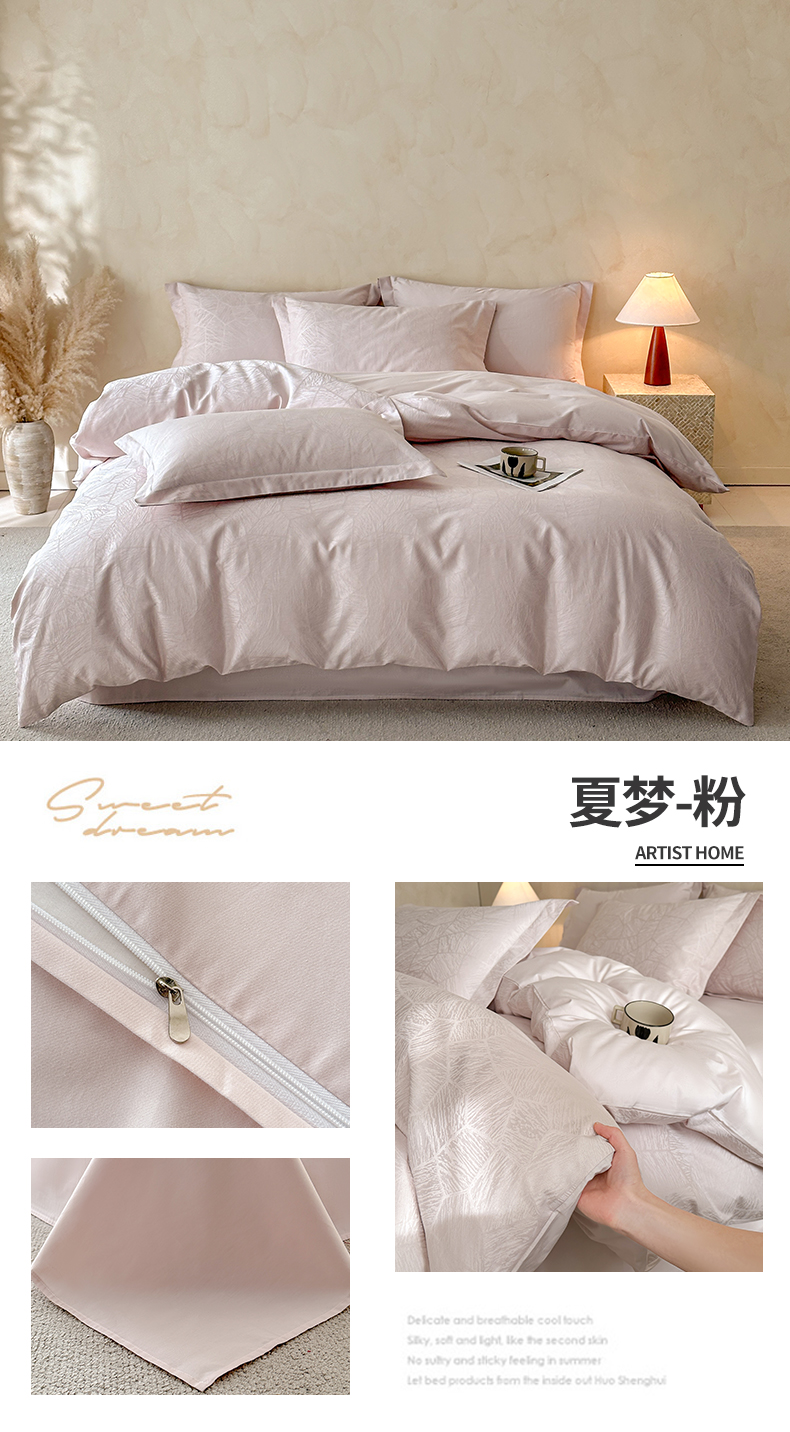 (总)笙意家纺 2025新款全棉A版棉麻B版13372四件套-云缦系列,云缦粉,云缦灰,云缦米