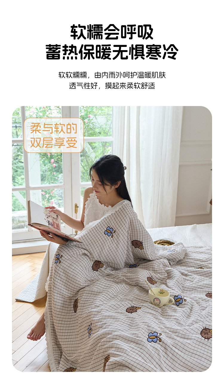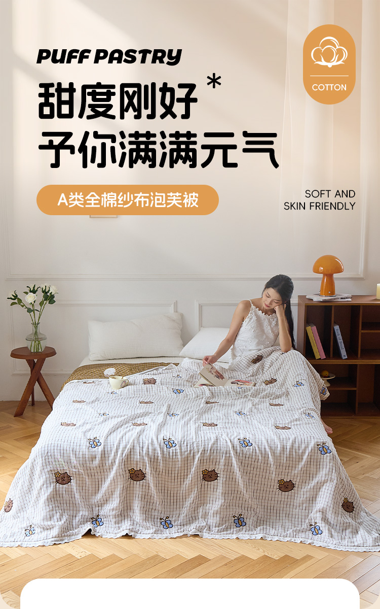 商品名称:沐瑟家纺 2026新款A类全棉纱布泡芙被春秋被被被子被芯 小拉布布