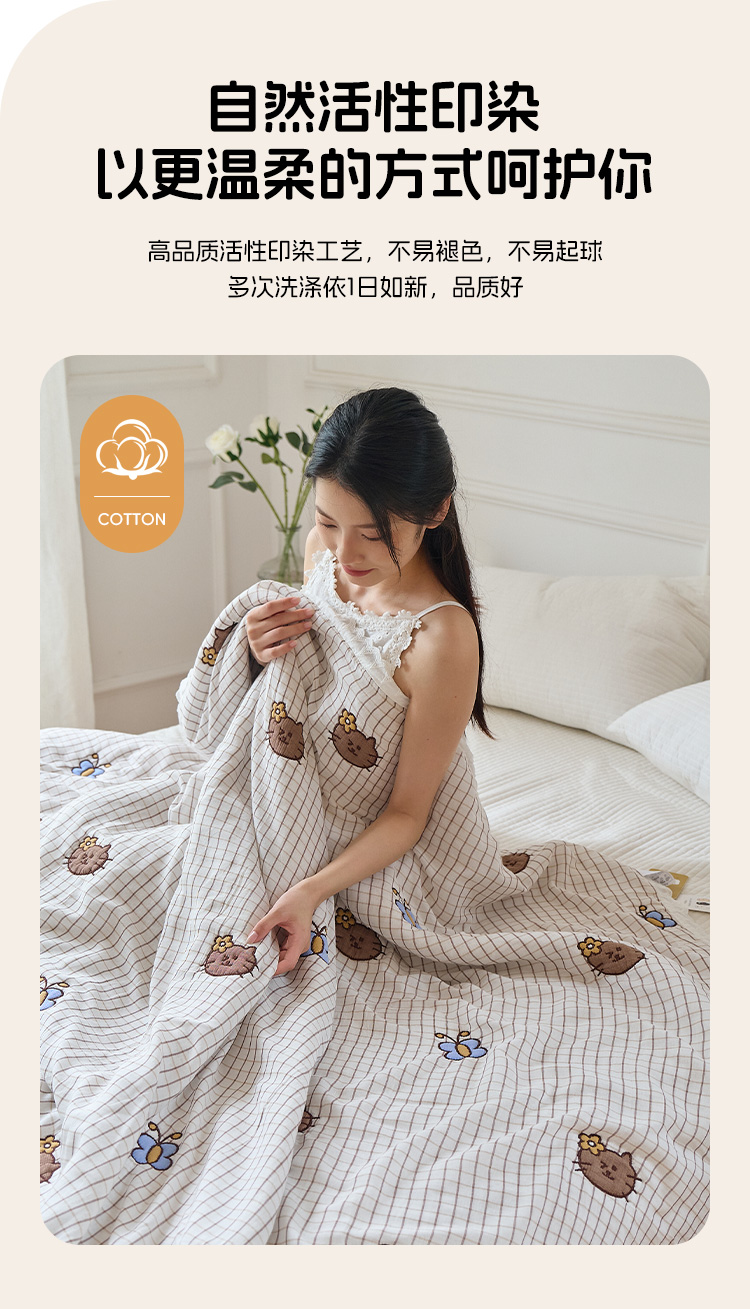 (总)沐瑟家纺 2025新款亲肤柔软全棉纱布中国风盖毯毯子,百花集,翠影鸟-蓝色,花想容,花鸟韵,蝶语-绿,蝶语-淡粉,花蝶-米,比翼鸟,墨葵,绮梦花