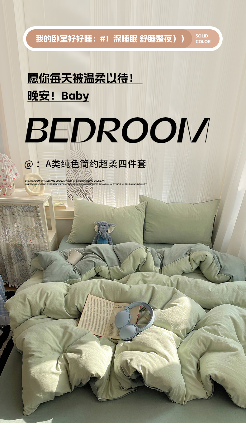 当前位置: 91家纺网 > 商品网购 > 床品套件 > 四件套 > 水洗棉四件套 > 沐芷 2026 纯色水洗棉A类四件套105g床上用品床单被套三件套---【提供买家秀】 草绿果绿