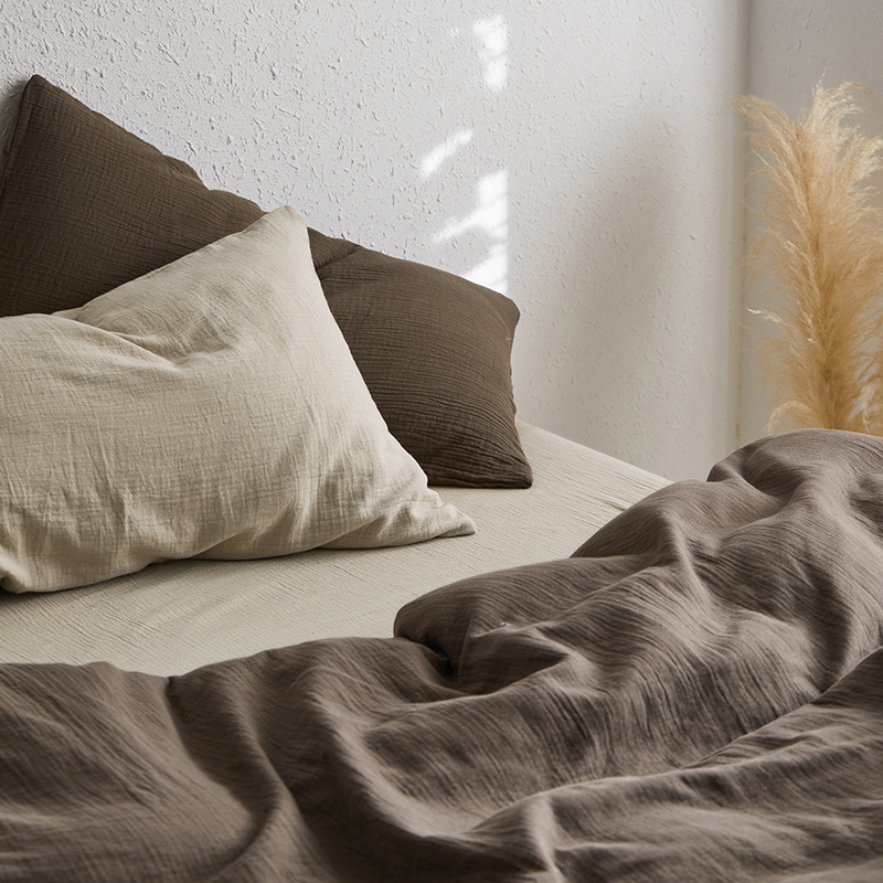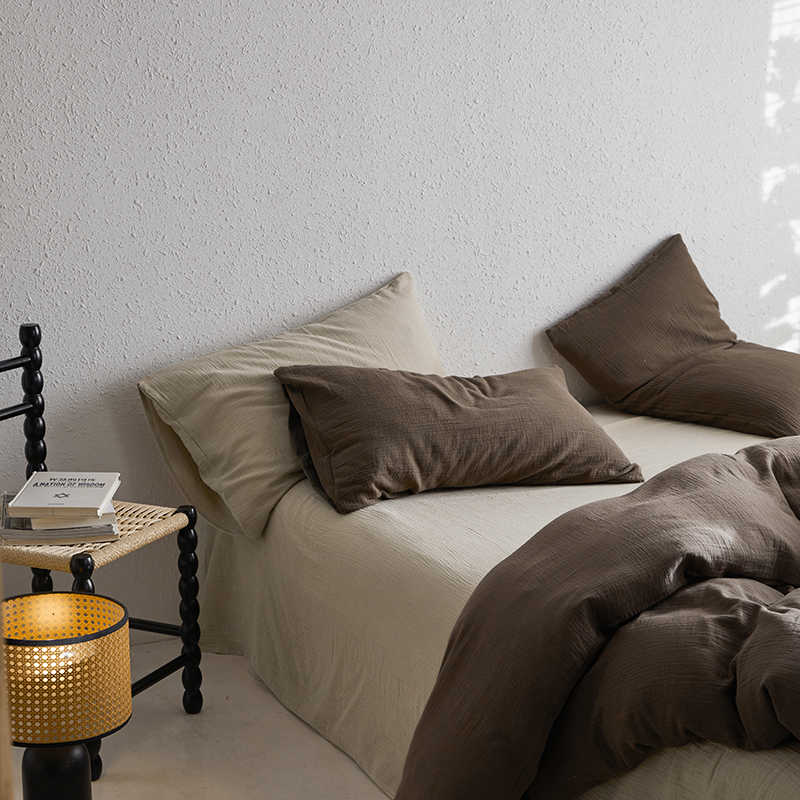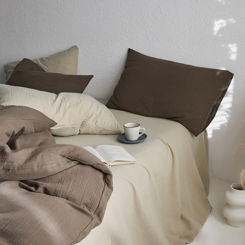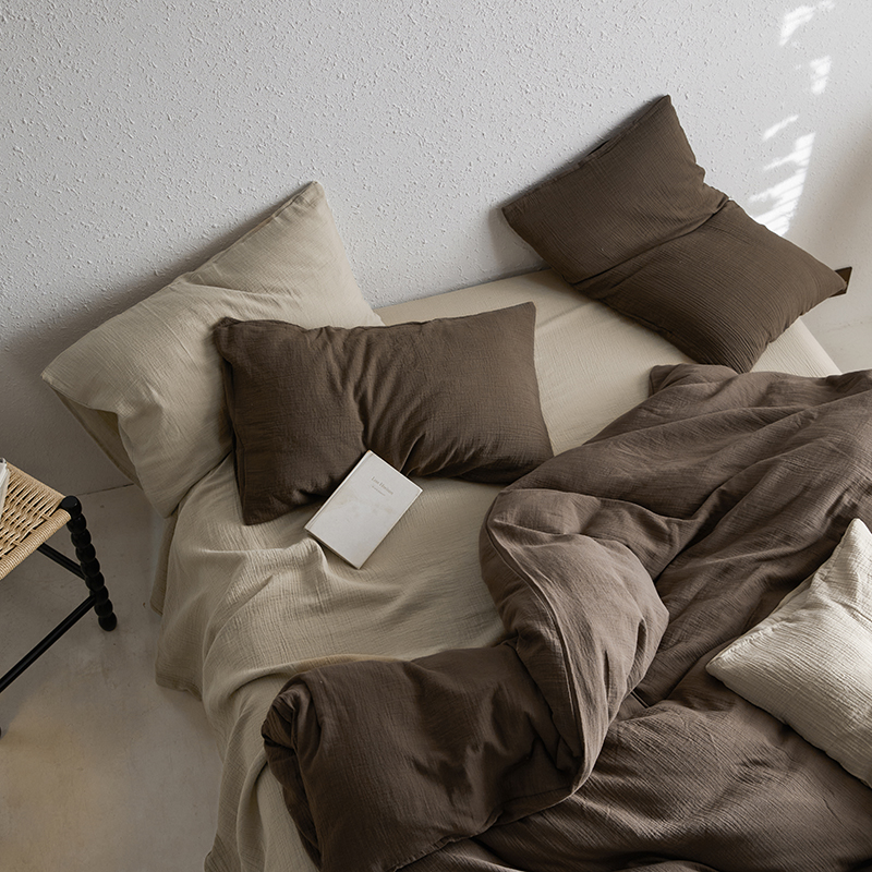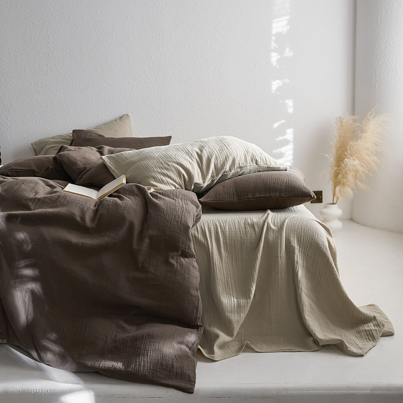 (总)山舍家居 2022新款双层纱布四件套,莱茵蓝,清绿,透白,雅灰,芥黄,裸粉,茶卡,甜白,星蓝,摩卡