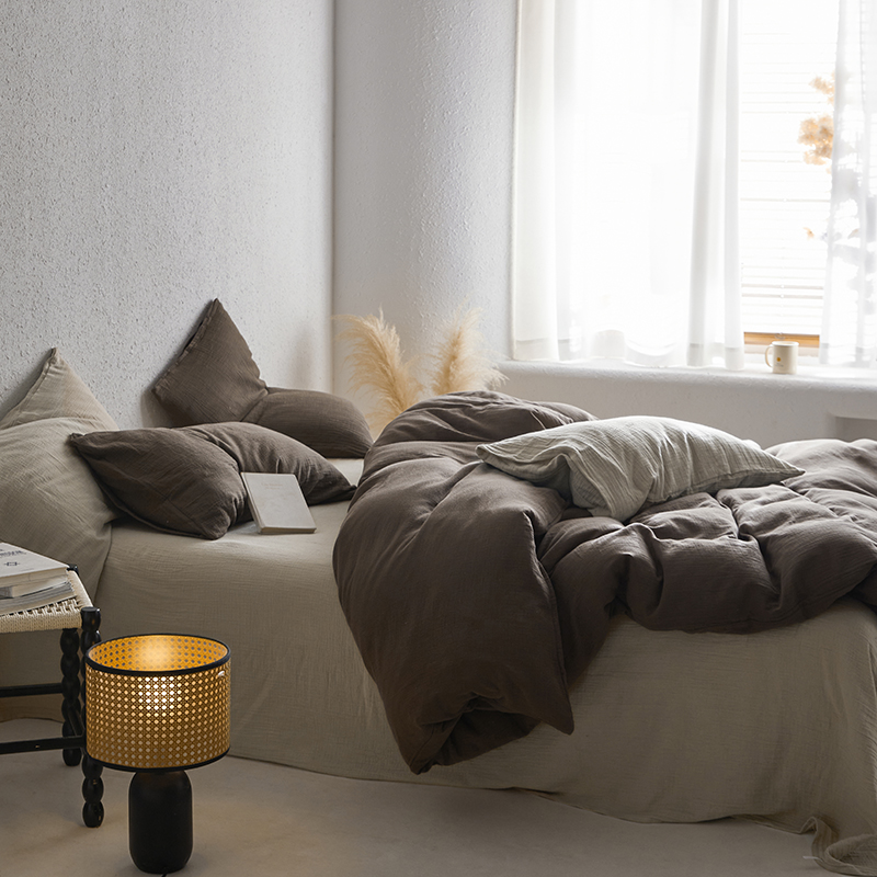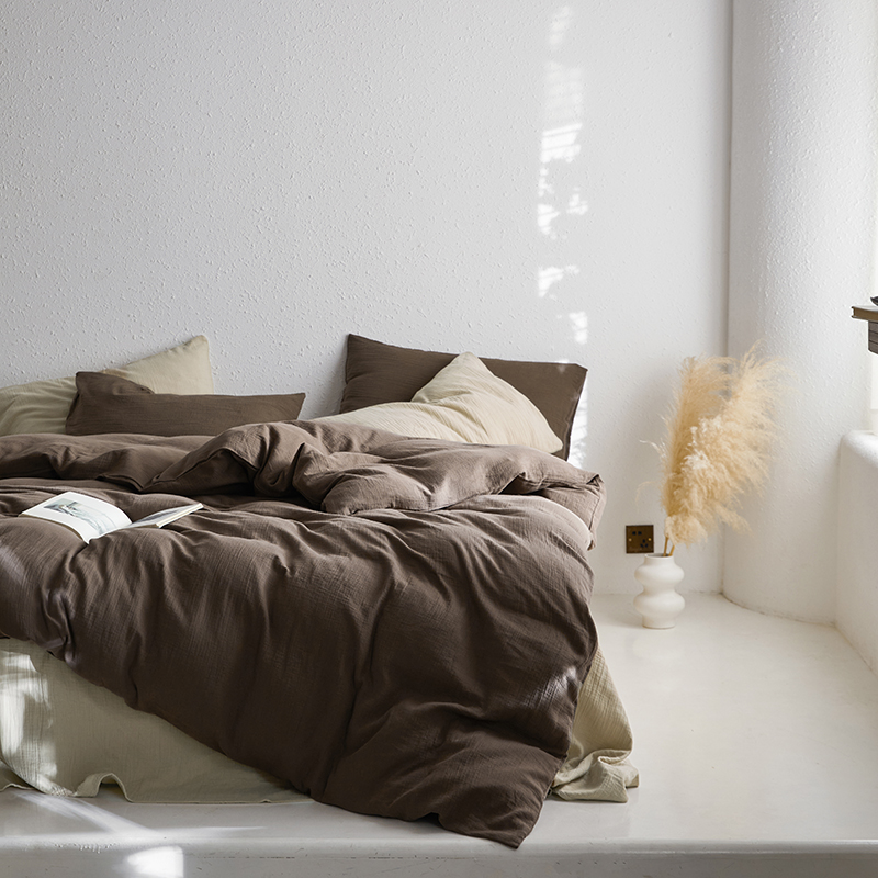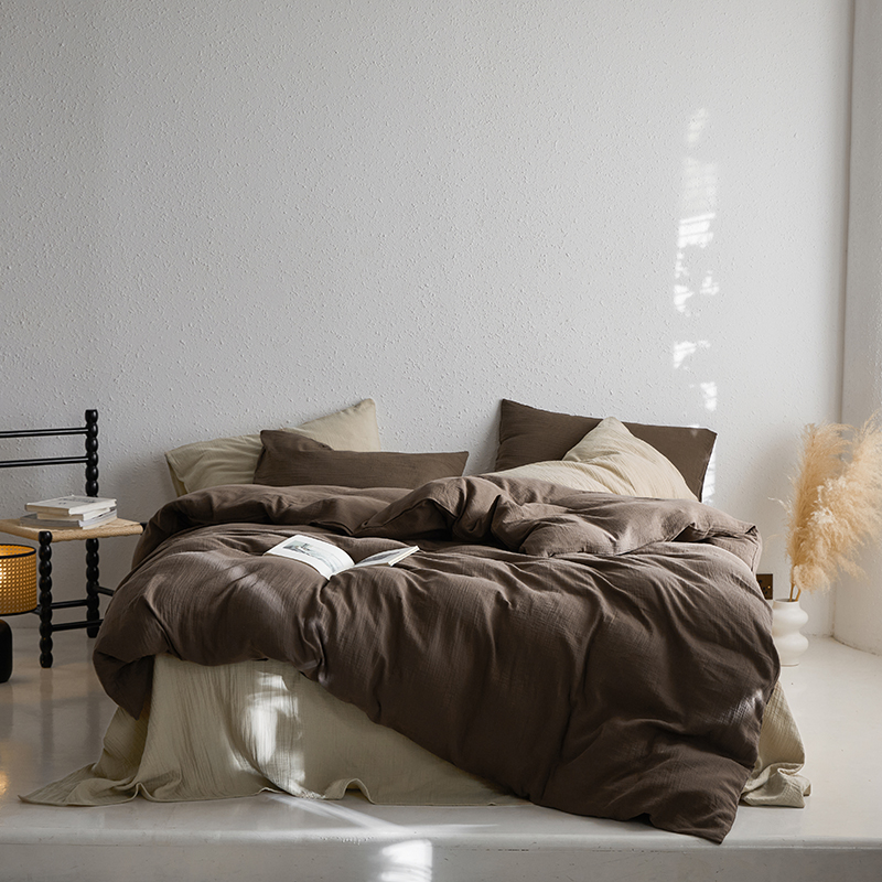 山舍家居 2023新款美拉德色系双层纱四件套 沙茶栗,沙茶栗